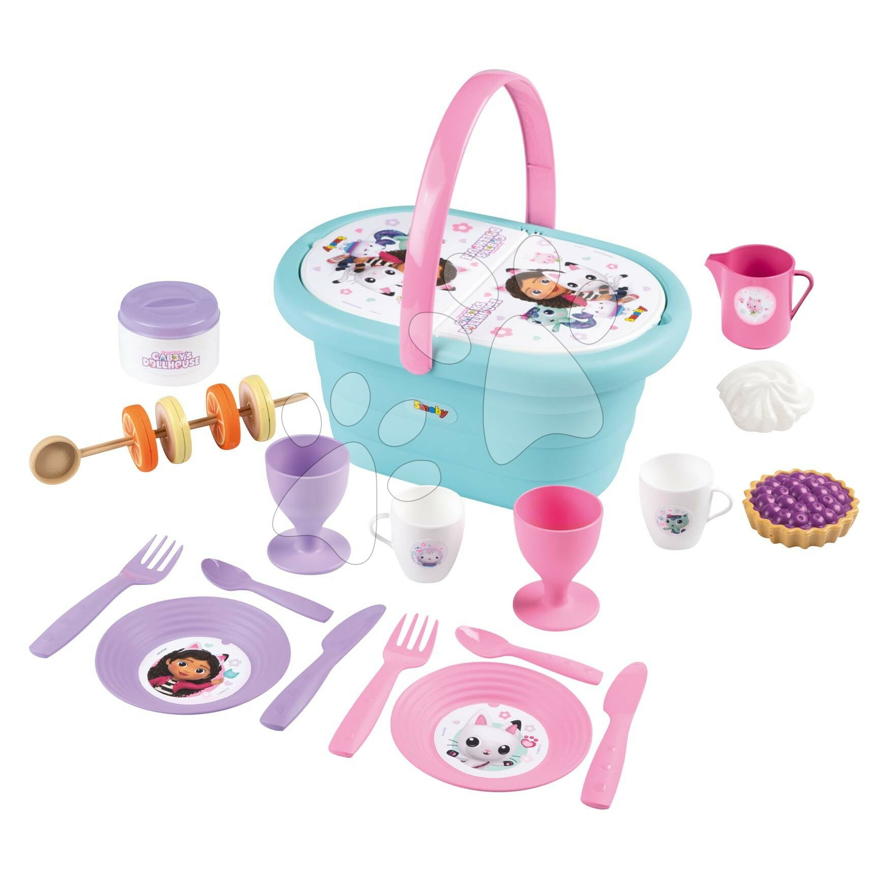 Smoby Košík s jídelní soupravou a skleničkami Gabby Picnic Basket s 21 doplňky a potravinami