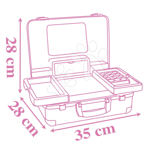 Při hře na kadeřnice, manikérky a kosmetičky se děti spolehnou na praktické zrcadlo, ve kterém budou kontrolovat svůj vzhled po každém zkrášlení. Je vyrobeno z kvalitního materiálu, bezpečného pro nejmenší děti. Sada replik dětské kosmetiky obsahuje 2 laky na nehty, 2 rtěnky, paletu očních stínů, řasenku, štětec, hřeben, ozdobnou čelenku, prsten a kosmetické lahvičky. Kufřík disponuje tajnou otevírací přihrádkou a díky dvěma praktickým uzávěrům budou mít děti jistotu, že jim doplňky z kufříku během přenášení nevypadnou.
