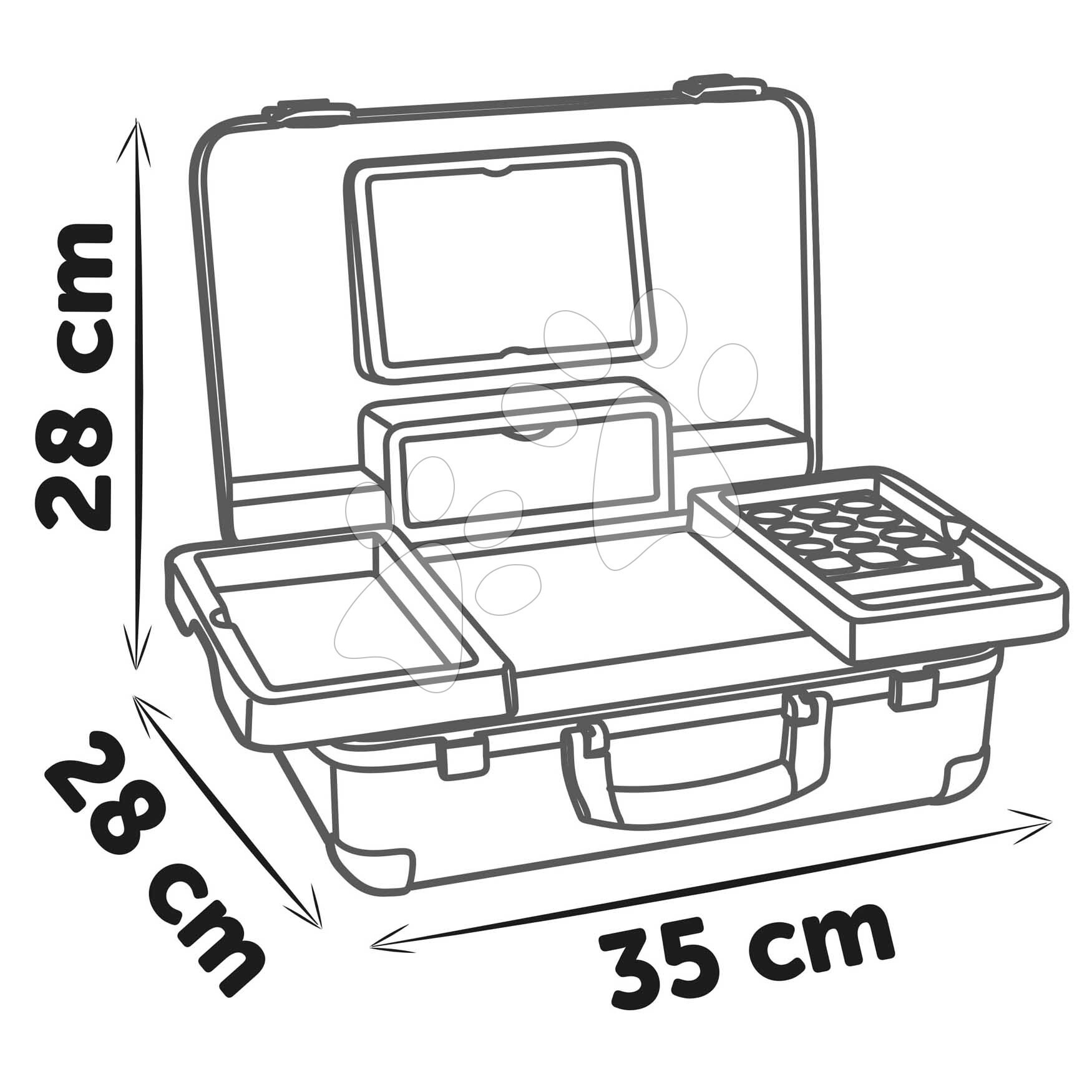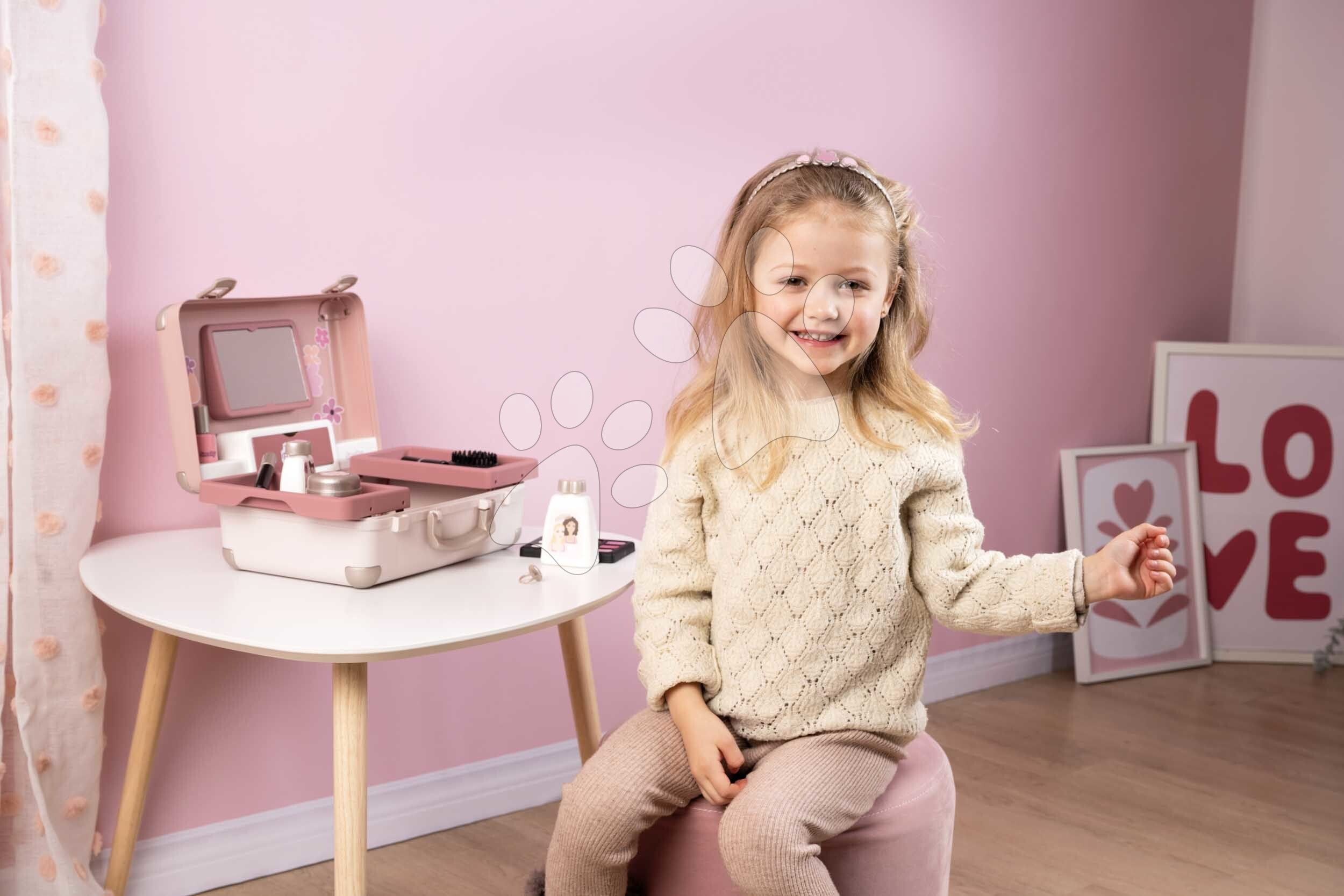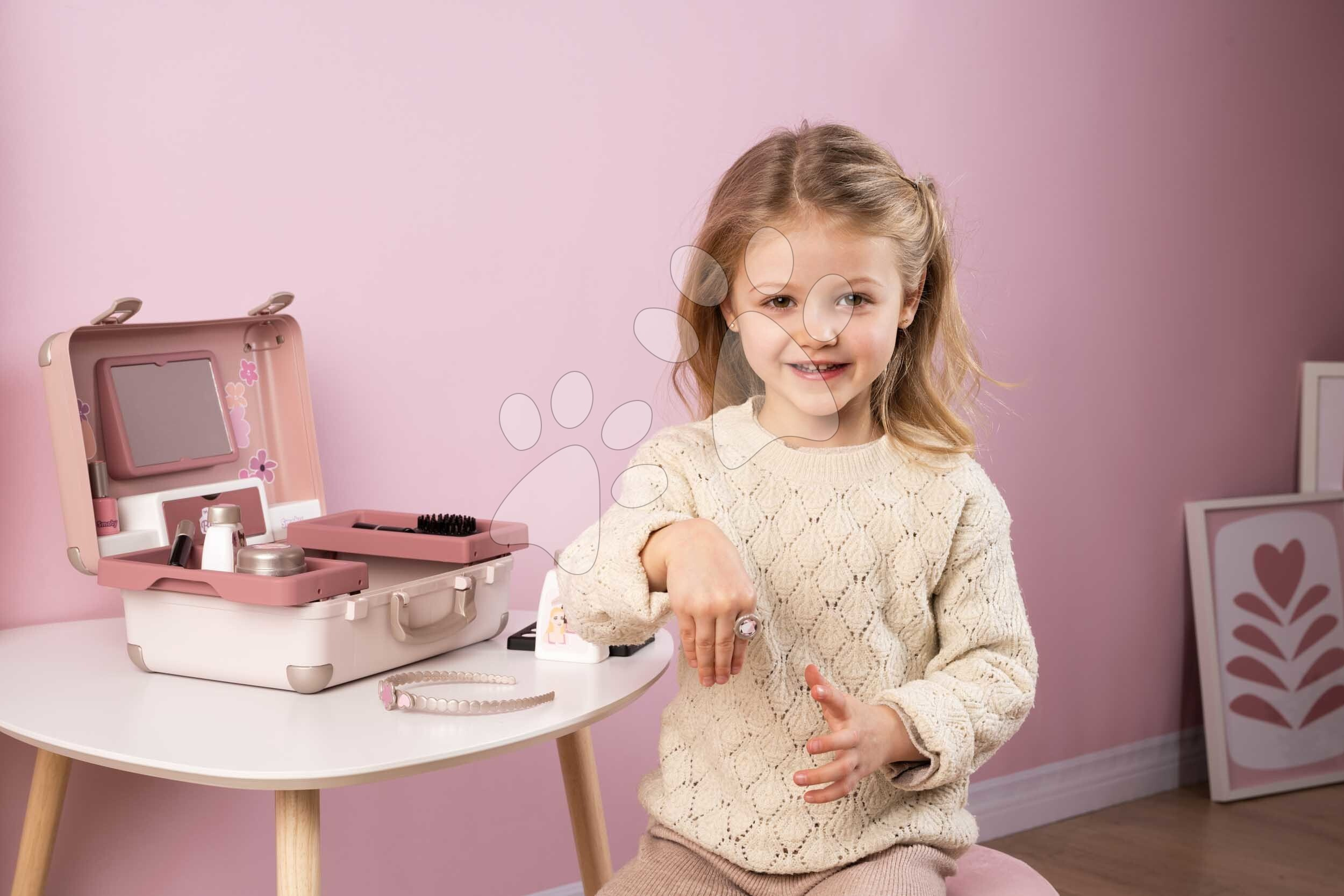 Kosmetický kufřík My Beauty Vanity 3v1 od francouzského Smoby představuje výjimečnou hračku pro všechny děti a zejména holčičky od 3 let, které si rády hrají hry na kadeřnice, vizážistky a manikérky. Kosmetický kufřík v jemném růžovo-modrém provedení v sobě skrývá sadu 13 kosmetických doplňků. Děti si je kdykoli mohou odnést v kufříku s praktickým držadlem. Po otevření kufříku má dítě k dispozici hrací plochu se 2 vyklápěcími bočními přihrádkami, na které si připraví potřebné kosmetické doplňky. Kosmetický kufřík s květinovým designem zabaví dívky na dlouhá léta, disponuje dostatečným úložným prostorem.