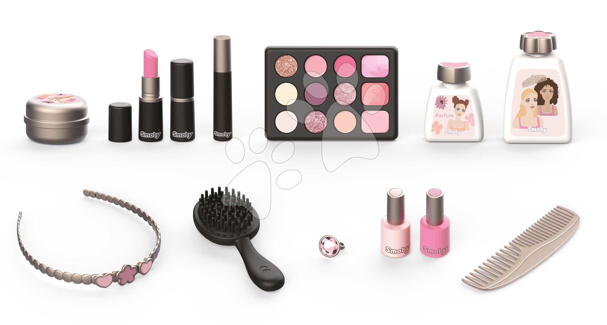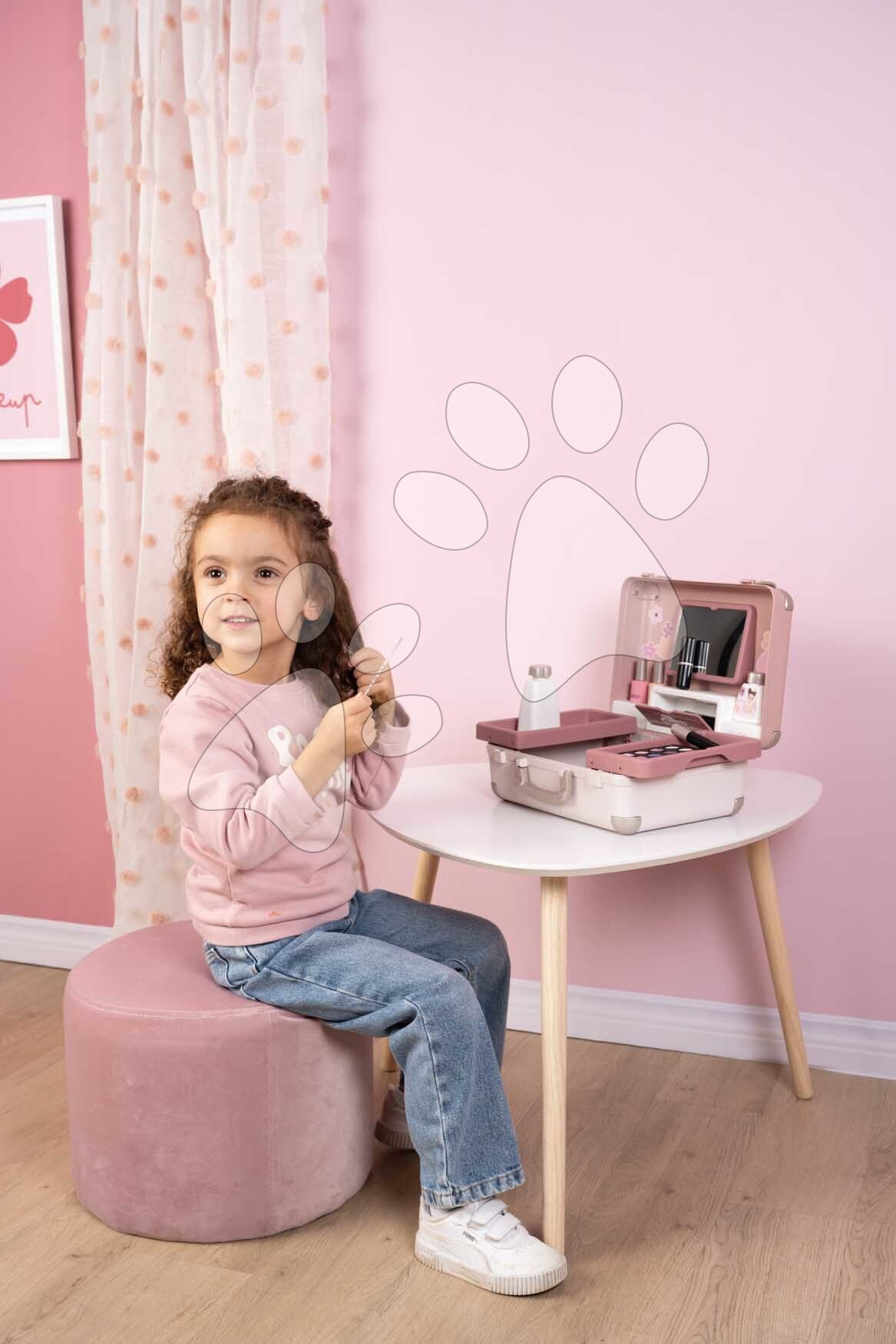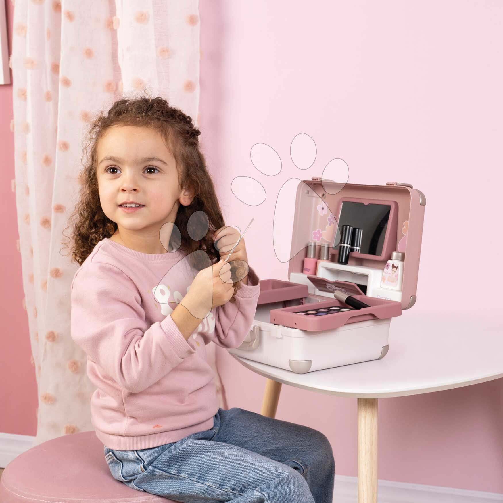 Kosmetický kufřík My Beauty Vanity 3v1 od francouzského Smoby představuje výjimečnou hračku pro všechny děti a zejména holčičky od 3 let, které si rády hrají hry na kadeřnice, vizážistky a manikérky. Kosmetický kufřík v jemném růžovo-modrém provedení v sobě skrývá sadu 13 kosmetických doplňků. Děti si je kdykoli mohou odnést v kufříku s praktickým držadlem. Po otevření kufříku má dítě k dispozici hrací plochu se 2 vyklápěcími bočními přihrádkami, na které si připraví potřebné kosmetické doplňky. Kosmetický kufřík s květinovým designem zabaví dívky na dlouhá léta, disponuje dostatečným úložným prostorem.