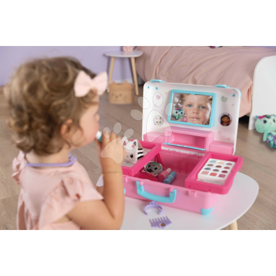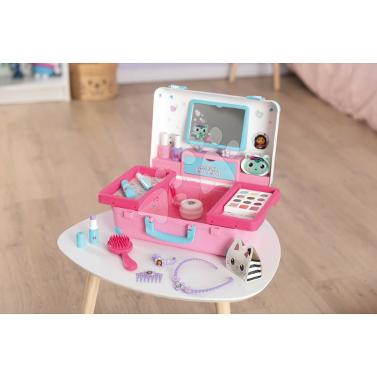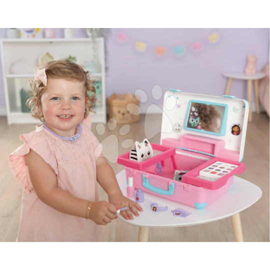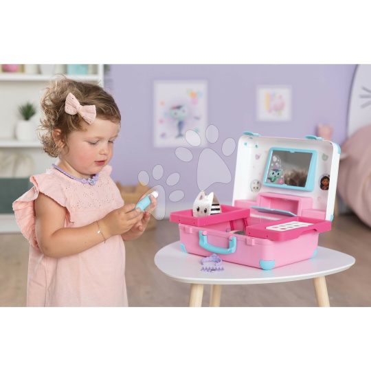 Smoby Kosmetický kufřík se zrcadlem Gabby Beauty Vanity pro kadeřnici s nehtovým studiem a make up kosmetikou s 15 doplňky