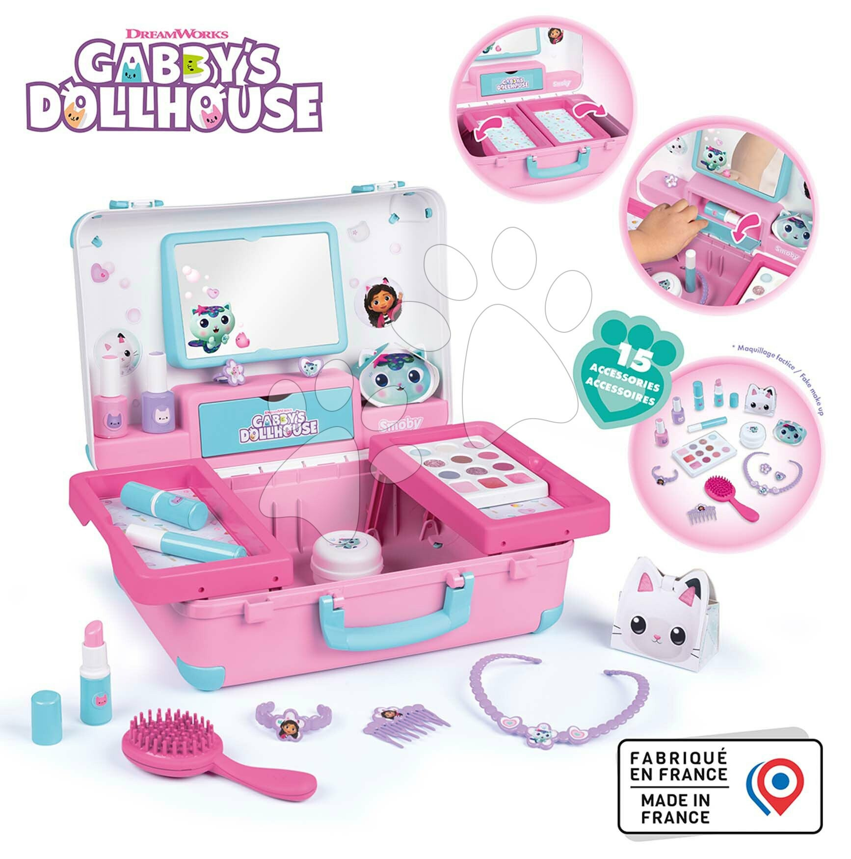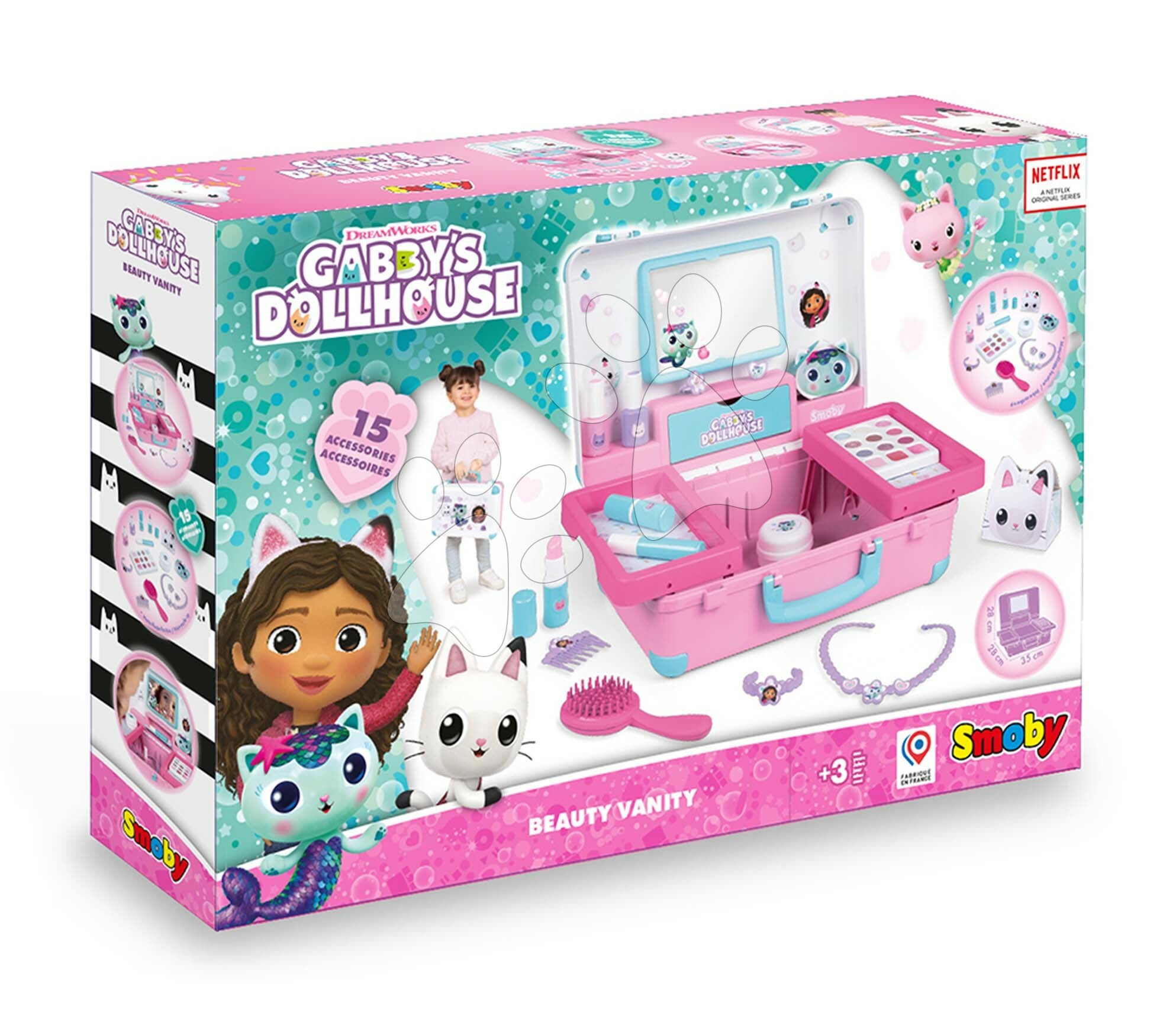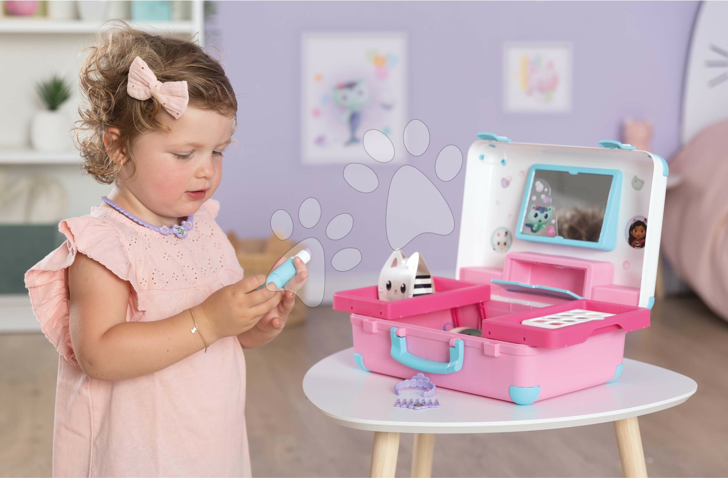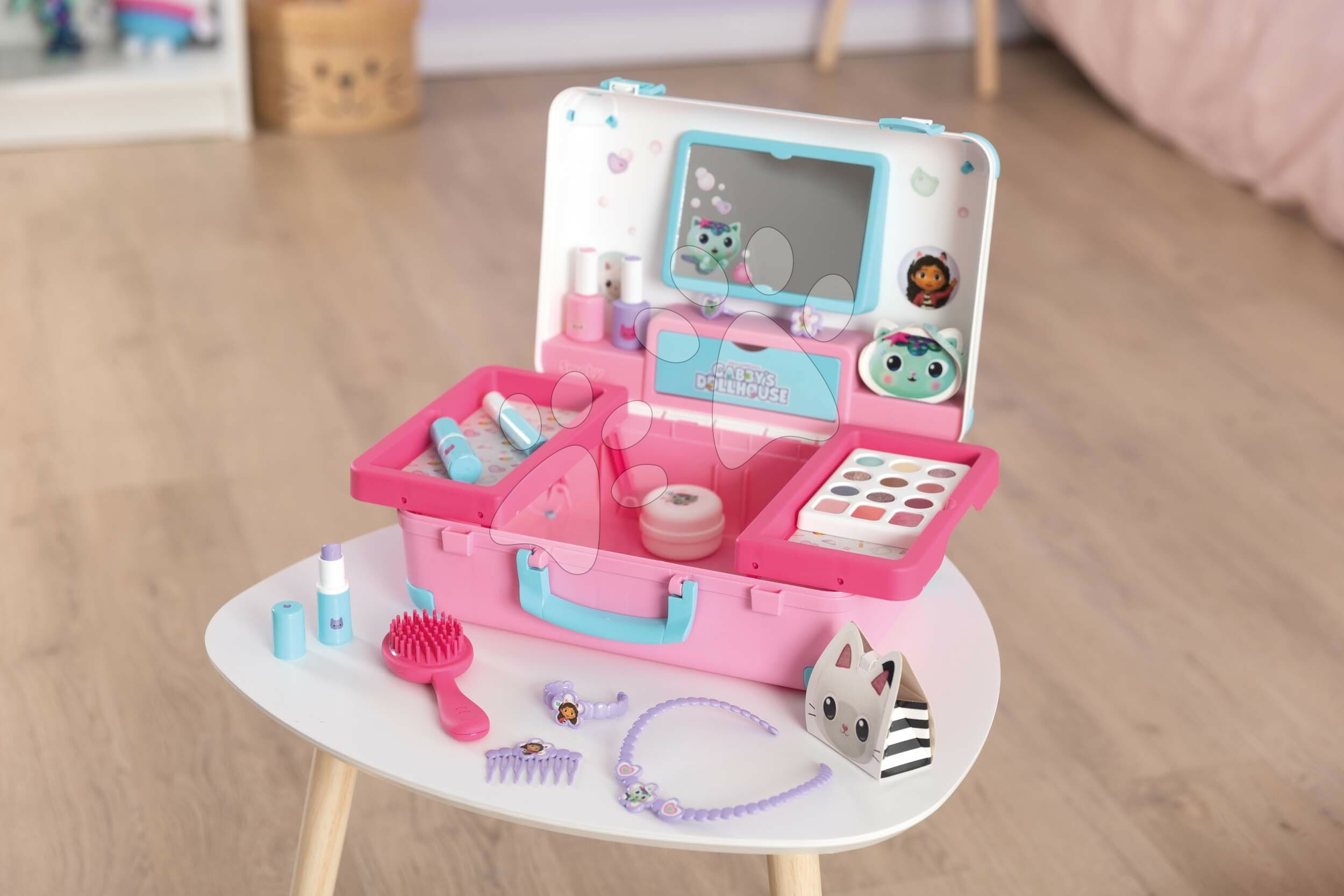 Smoby Kosmetický kufřík se zrcadlem Gabby Beauty Vanity pro kadeřnici s nehtovým studiem a make up kosmetikou s 15 doplňky