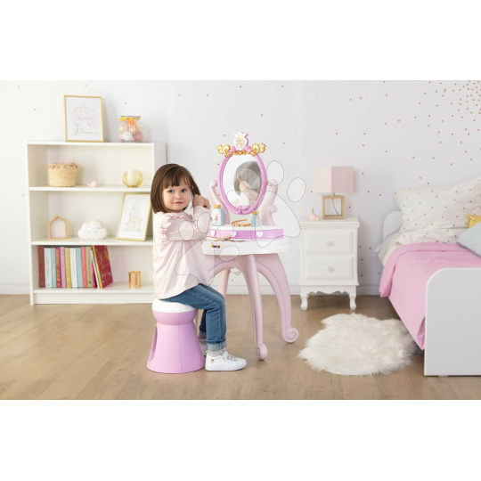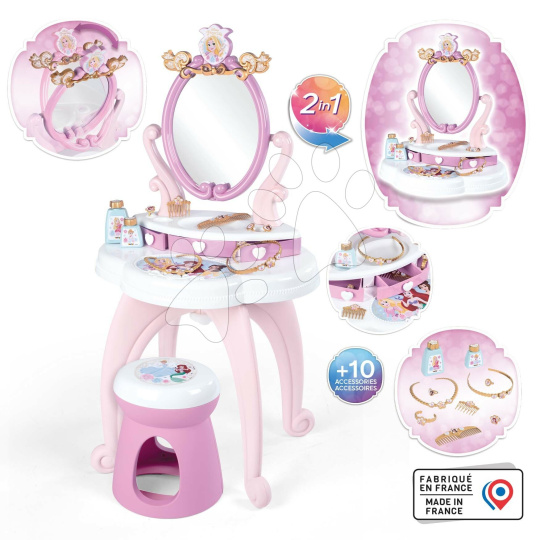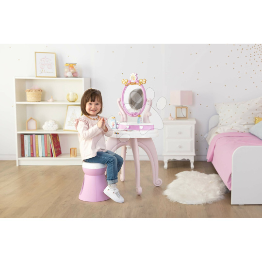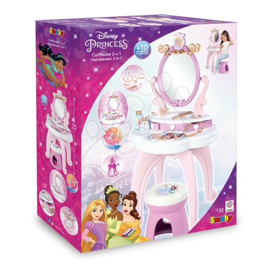 Smoby Kosmetický stolek Disney Princess 2in1 Hairdresser a židle s 10 zkrášlovacími doplňky 94 cm výška