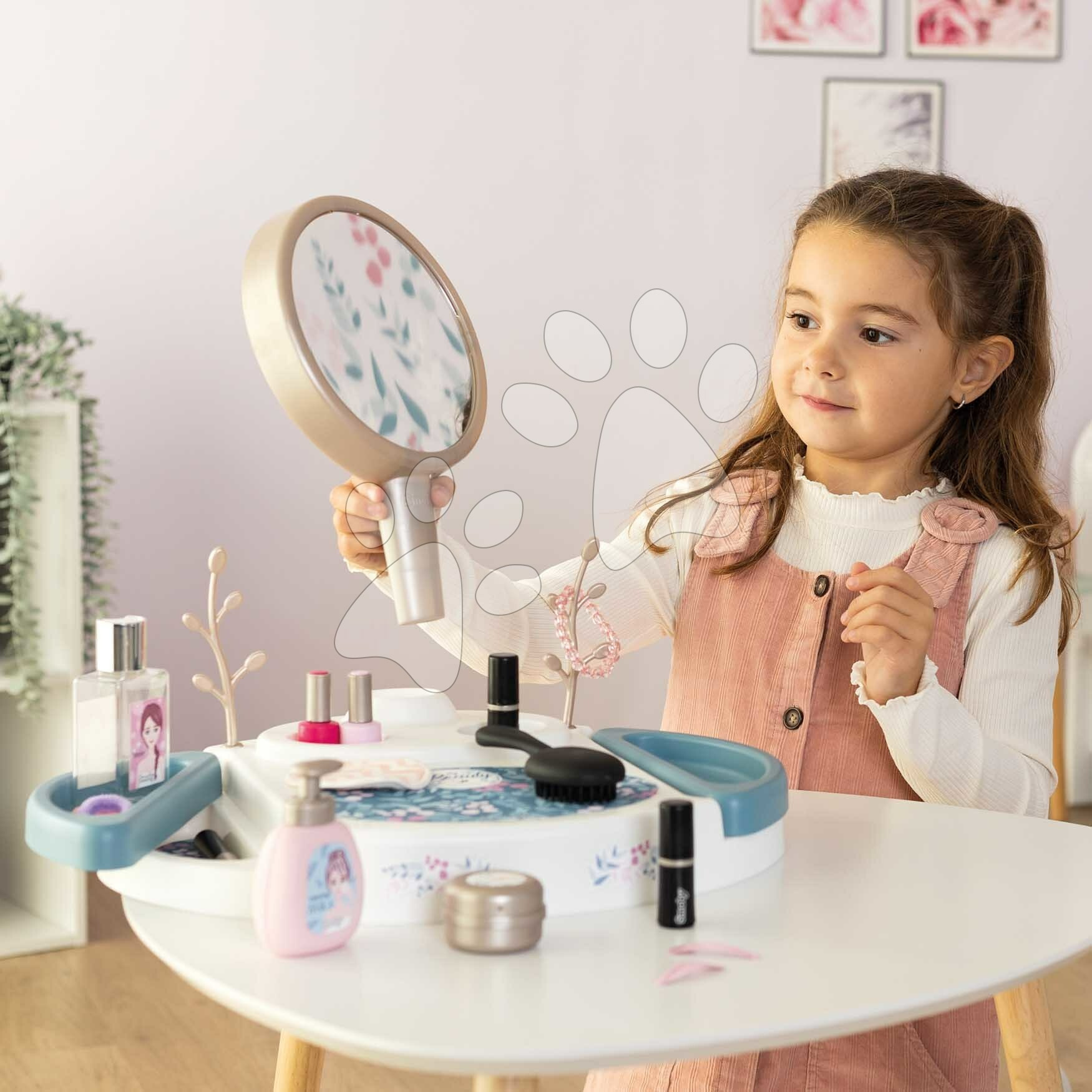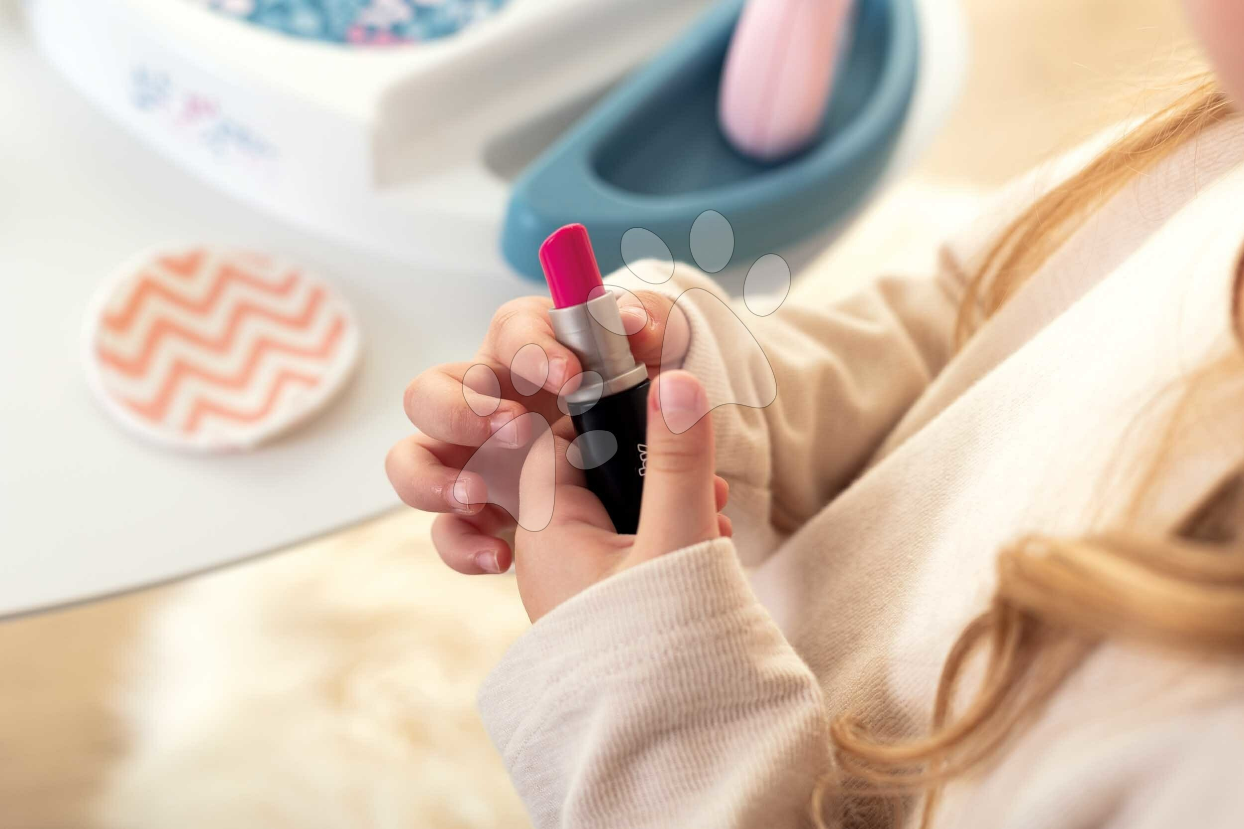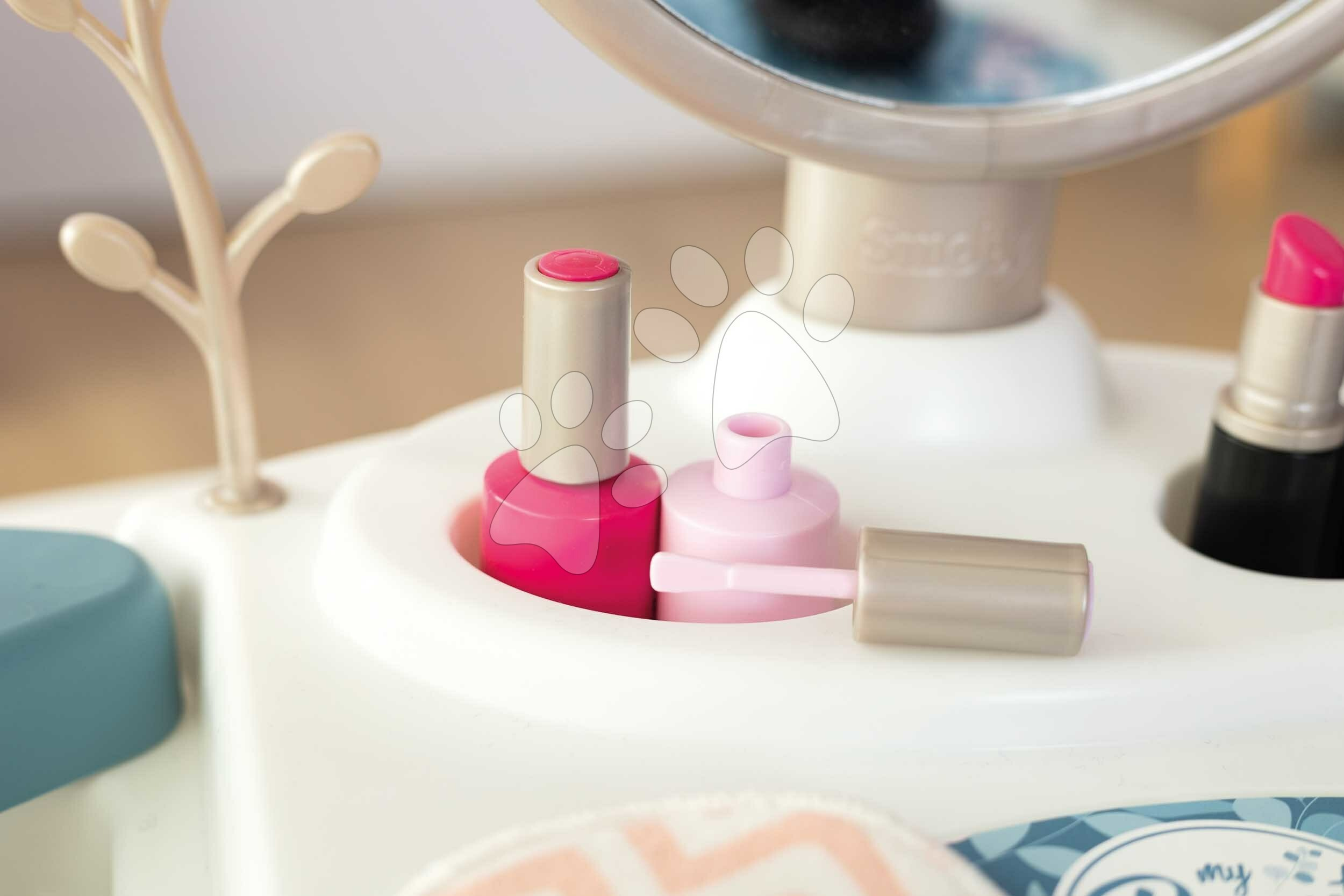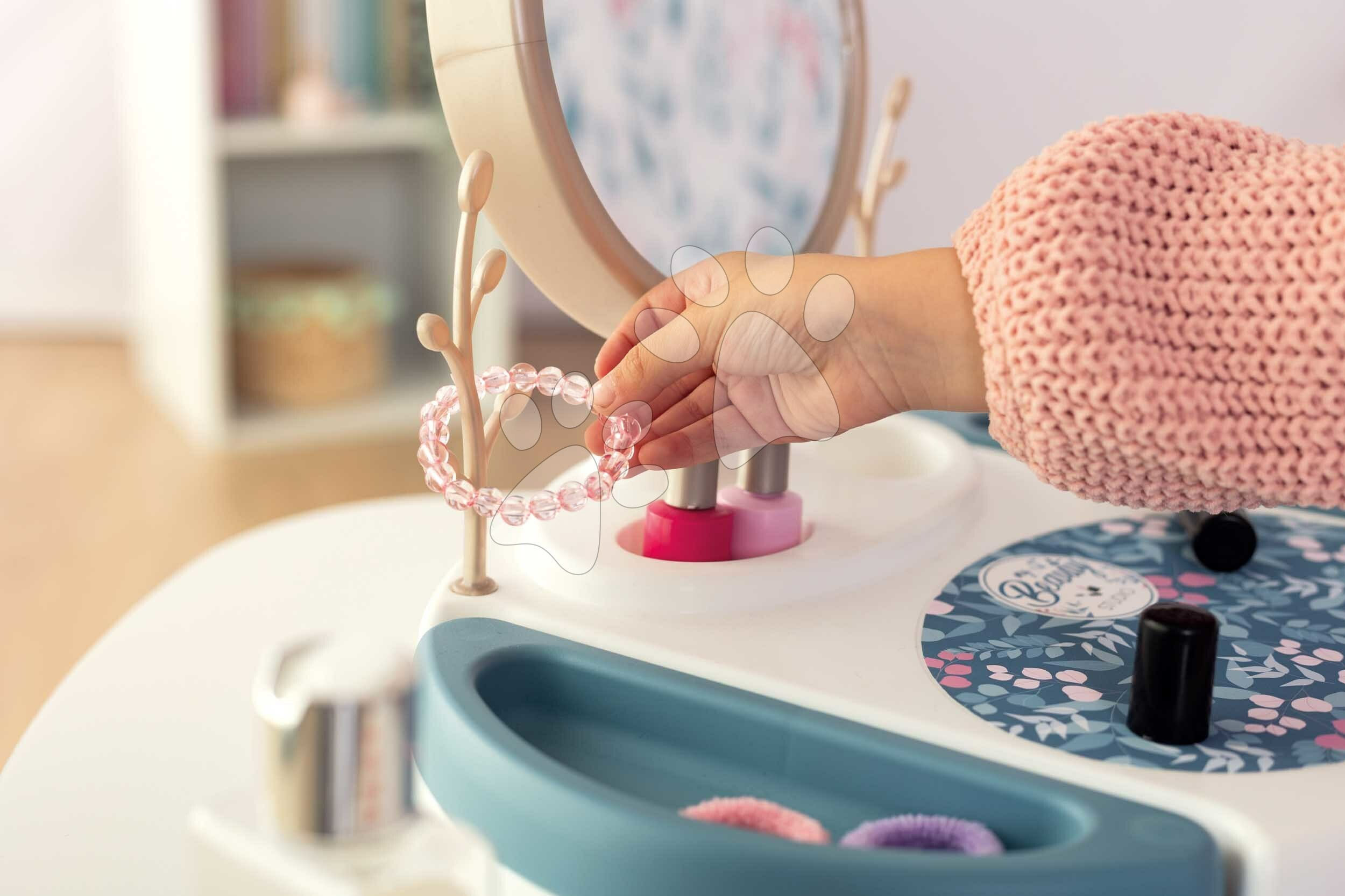 Smoby Kosmetický stolek s odnímatelným zrcadlem My Beauty Studio otevíratelné přihrádky a stromečky na zavěšení šperků a 15 doplňků
