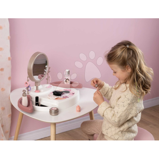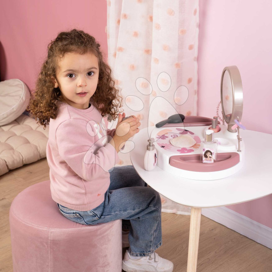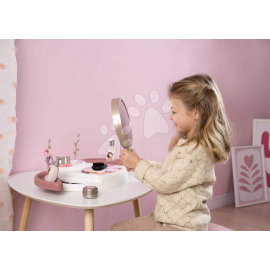 Smoby Kosmetický stolek s polohovatelným zrcadlem My Beauty Studio s otočnými poličkami a stromky na zavěšení šperků s 15 doplňky