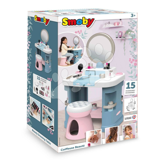 Smoby Kosmetický stolek s židlí My Beauty Dressing Table se zrcadlem a 15 zkrášlovacích doplňků