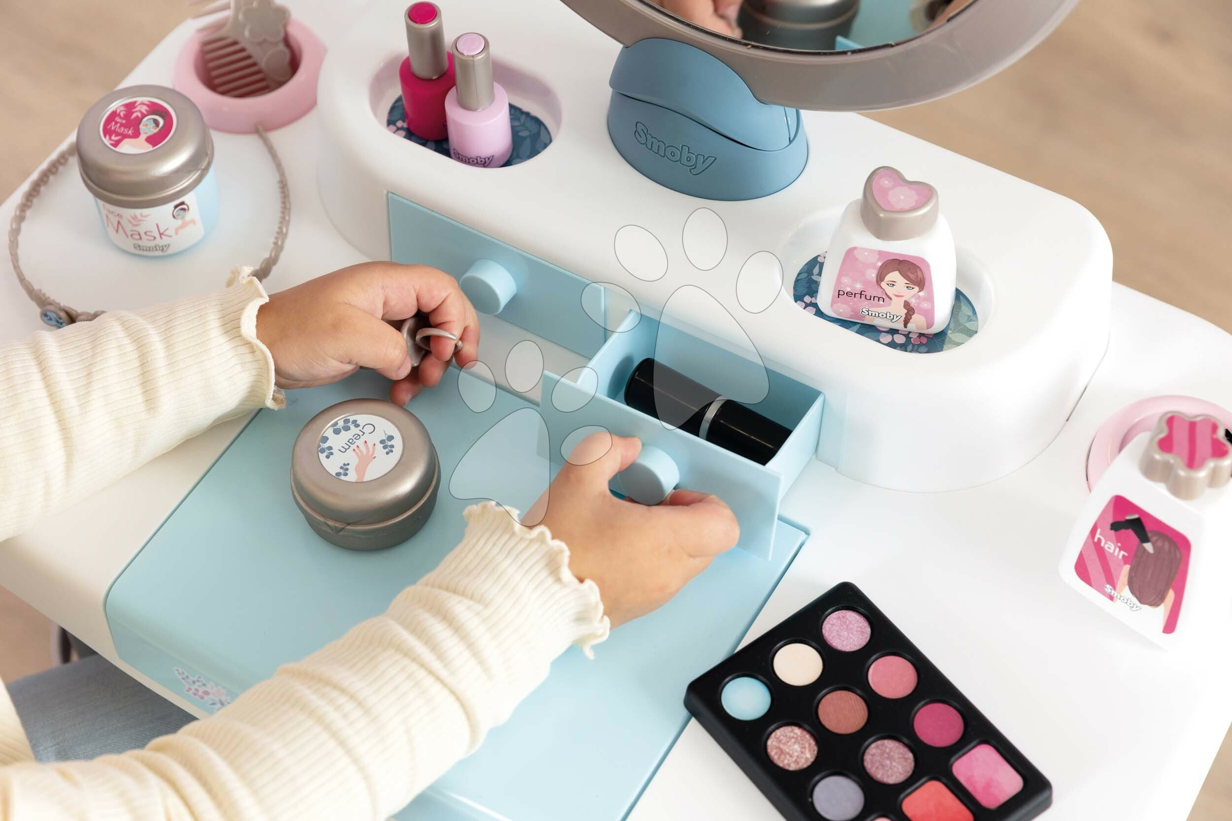 Smoby Kosmetický stolek s židlí My Beauty Dressing Table se zrcadlem a 15 zkrášlovacích doplňků