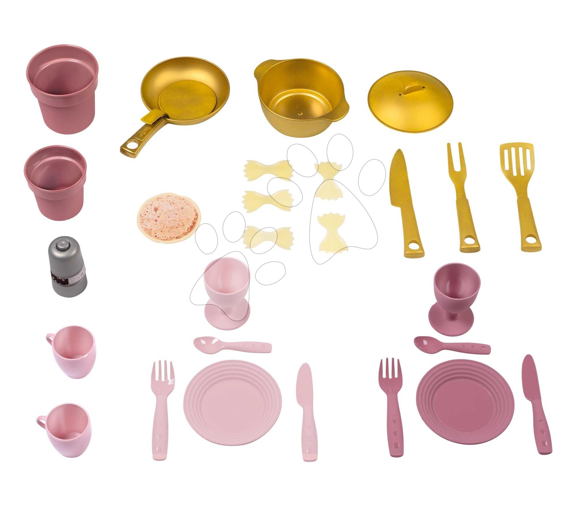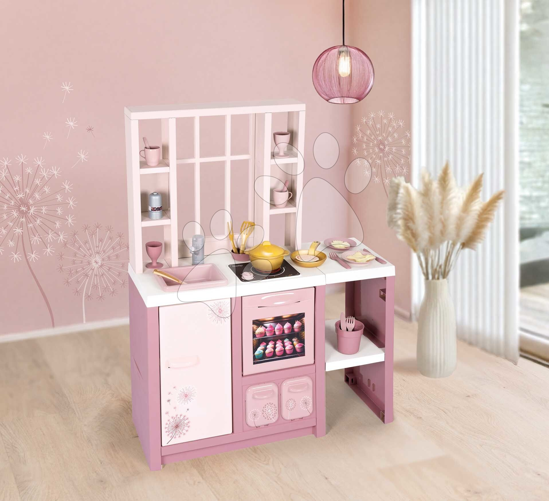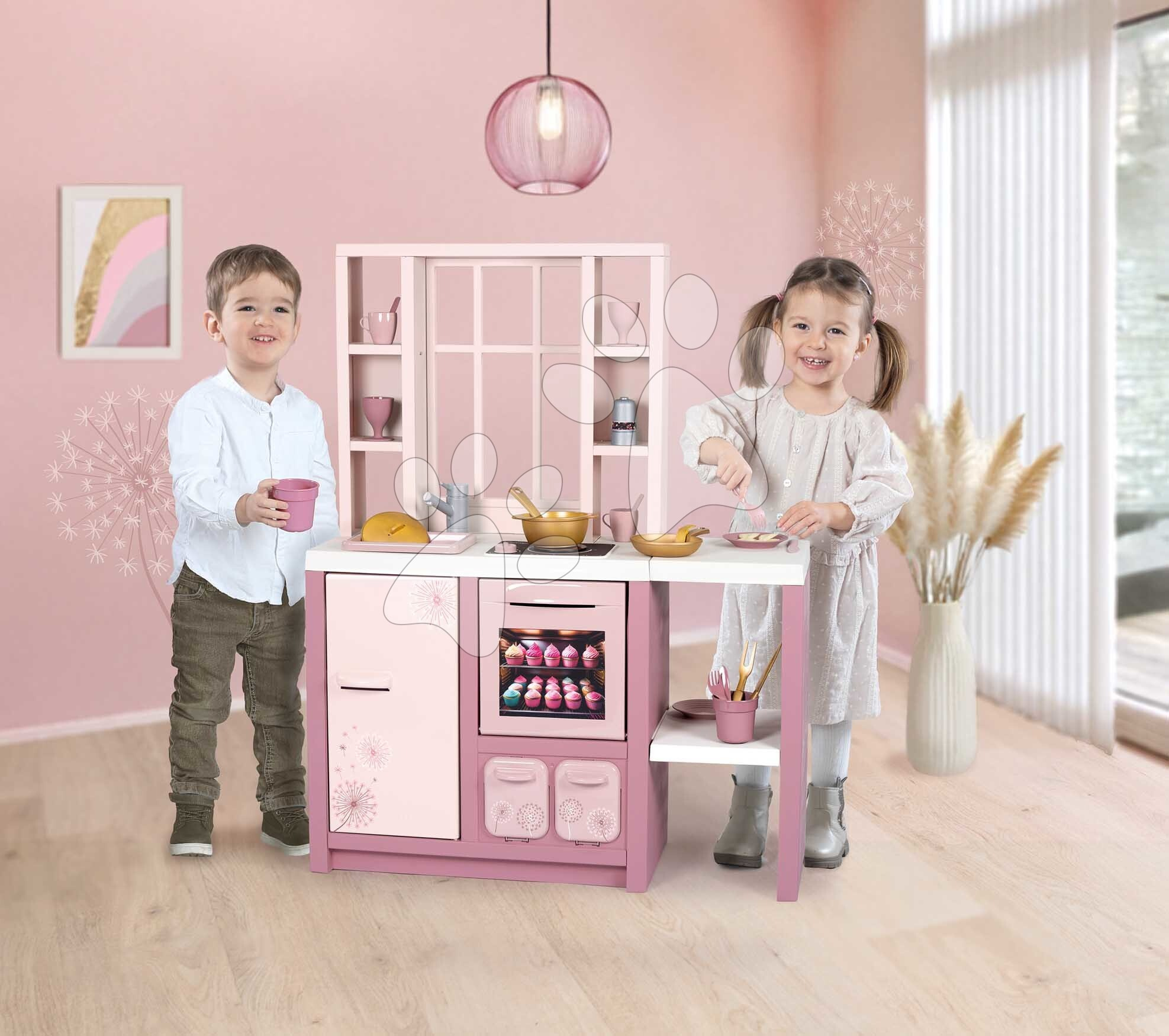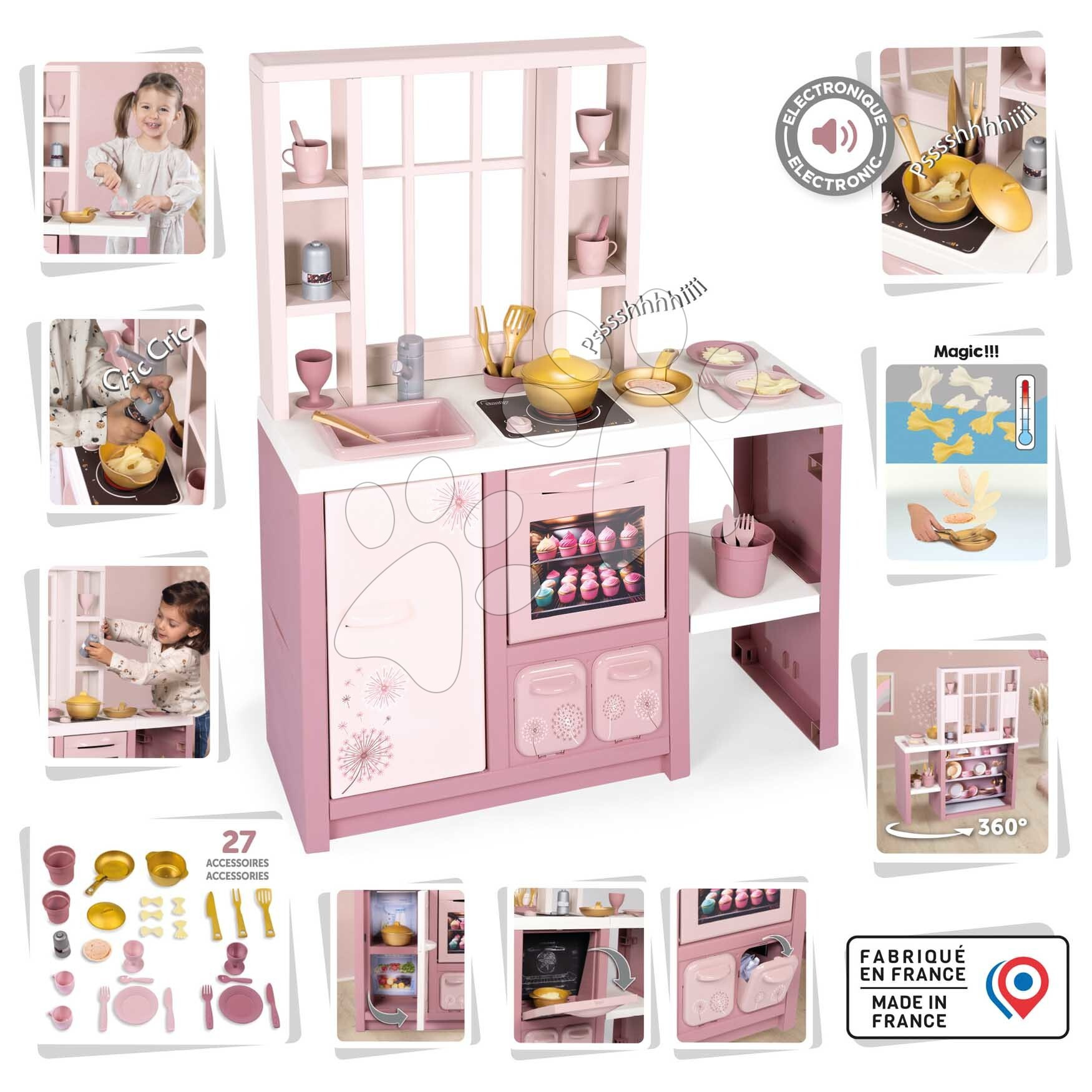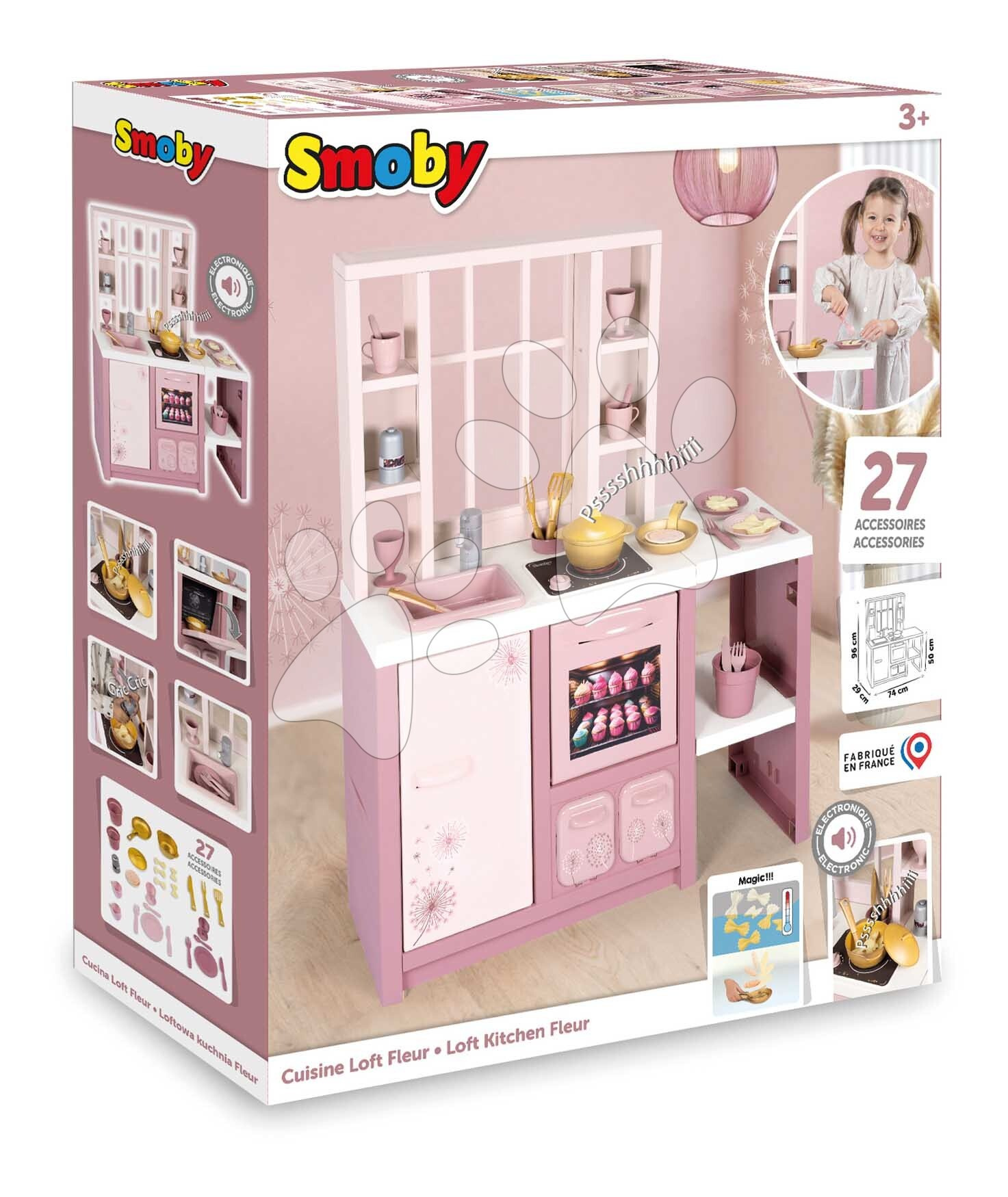 Elektronická kuchyňka Loft Fleur Pink 360° od francouzského výrobce Smoby připraví všem dětem a zejména holčičkám od 3 let skvělé zážitky při hře na šéfkuchařky. Kuchyňka s motivem pampelišek a elegantním zlatým a růžovým nádobím je plně přizpůsobena potřebám malých kuchařek. Děti se při vaření zabaví na dlouhé hodiny, získají realistické zážitky při přípravě magických těstovin, které v závislosti na okolním prostředí dokážou měnit barvu a naučí se připravovat palačinku na pánvi s funkcí otáčení jako skuteční šéfkuchaři. Součástí kuchyňky je až 27 doplňků, mezi kterými jsou nožíky, vidličky, lžičky, talířky, solnička, kuchyňské náčiní, magické těstoviny, palačinka, hrnec s poklicí, pánev a kelímky na odkládání příboru.