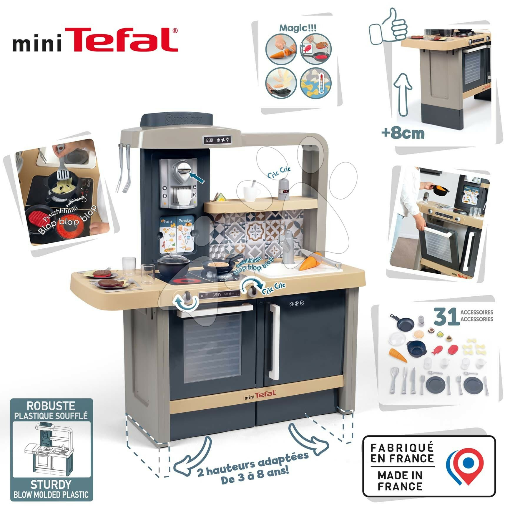 Smoby Kuchyňka elektronická s nastavitelnou výškou Tefal Evolutive New Kitchen se zvukovým sporákem a funkčními spotřebiči a 31 doplňků