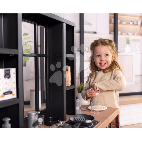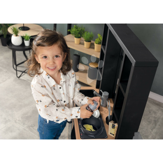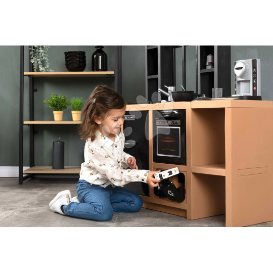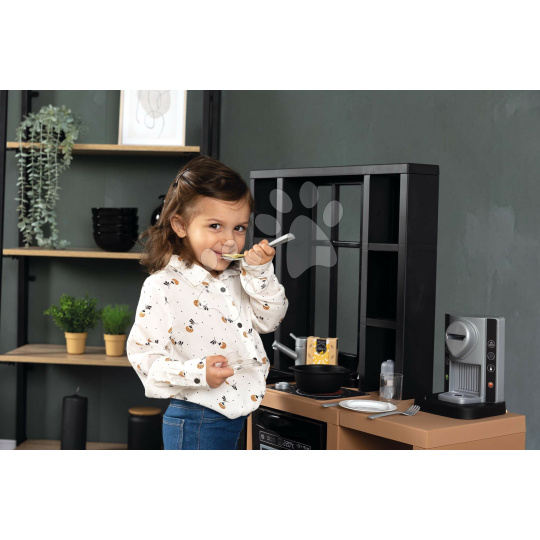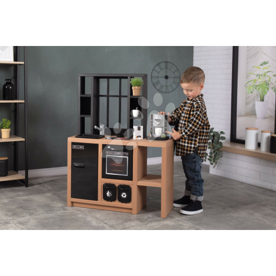 Smoby Kuchyňka moderní Loft Industrial Kitchen s kávovarem a funkčními spotřebiči a 32 doplňky 50 cm pracovní deska