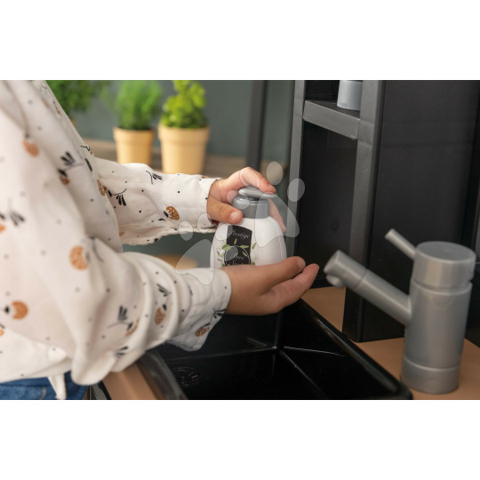Chlapci a dívky se při přípravě jídel v kuchyňce spolehnou na chladničku s otevíratelnými dvířky, pečicí troubu a varnou desku s otočným knoflíkem. Po obědě může nádobí umýt v praktickém dřezu s kohoutkem. Francouzští designéři při návrhu kuchyňky mysleli i na životní prostředí, proto je vybavena i otevíratelnými přihrádkami pro klasický a recyklovatelný odpad, díky čemuž se děti od útlého věku učí správně třídit použité obaly. Nadčasová kuchyňka je vybavena množstvím úložného prostoru a praktickými poličkami, do kterých se uloží kuchyňské náčiní a doplňky.