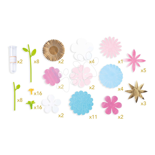 Kytice lze opět rozebrat, takže si malé květinářky zkoušejí stále nové návrhy, spolu se svými kamarádkami a sourozenci mohou soutěžit, kdo dokáže připravit nejkrásnější kytici. Kreativní sada obsahuje 90 doplňků, mezi kterými je stroj s lisem, látkové okvětní lístky, dlouhé a krátké stonky, razítka na spojení květin a 2 zkumavky. Přístroj na výrobu květin je vyroben z pevných a odolných plastů se sametově jemným povrchem a zaoblenými hranami.