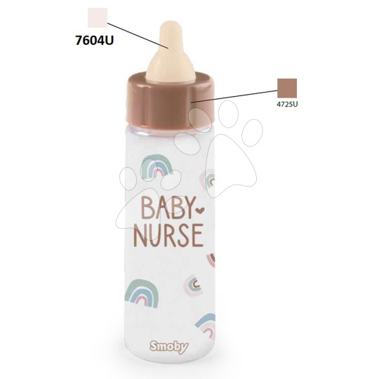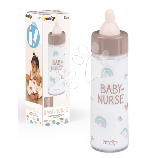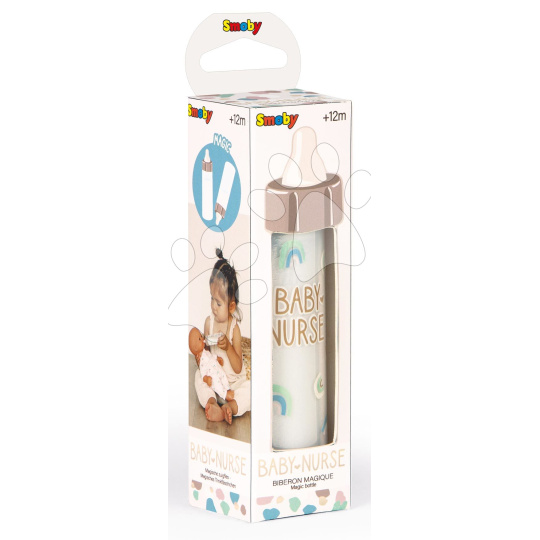 Láhev s ubývajícím mlékem Natur D'Amour Magic Bottle pro panenku z oblíbené kolekce Baby Nurse od francouzského výrobce Smoby potěší všechny holčičky od 12 měsíců, které rády pečují o své panenky. Lahvička s mlékem pro panenku má výšku 12,5 cm. Je vyrobena z kvalitních a odolných plastových materiálů, sametově jemných na dotek a přední část zdobí nápis Baby Nurse v pastelových barvách. Při krmení panenky malá maminka získává pocit, že mléko z láhve ubývá a teče do bříška panenky, čímž se hra a krmení panenky stává velmi realistickou.
