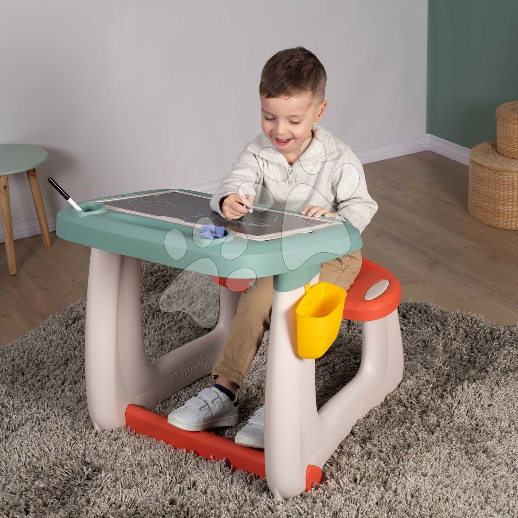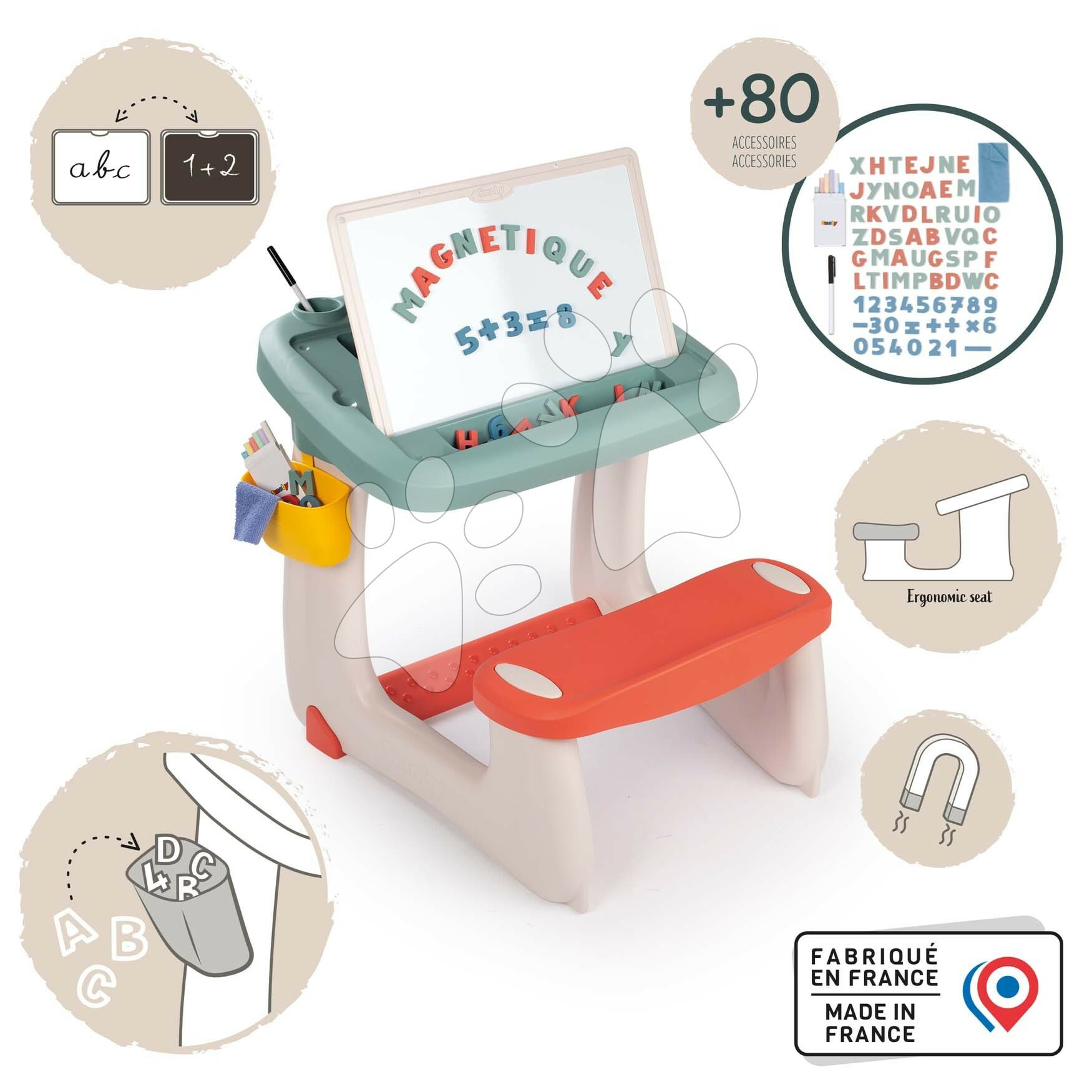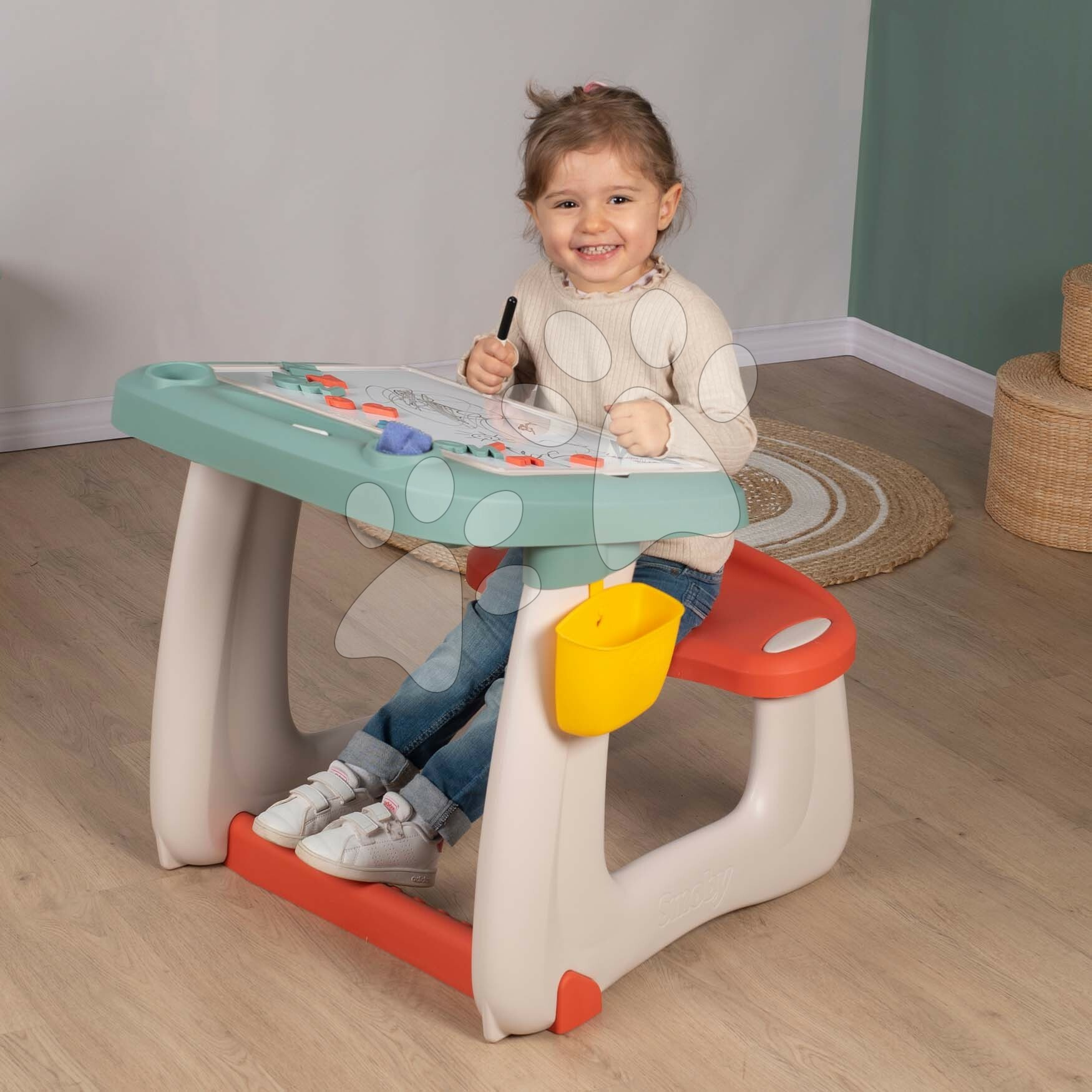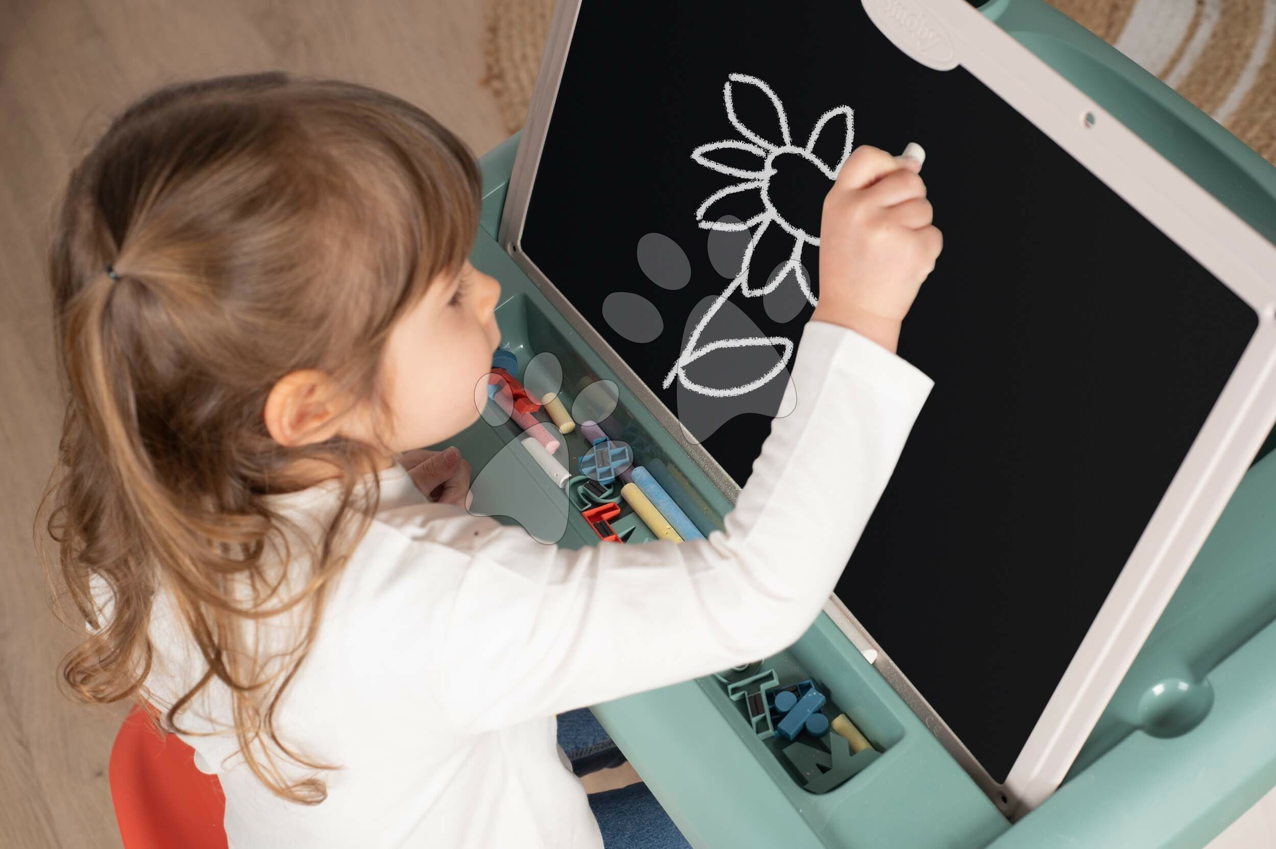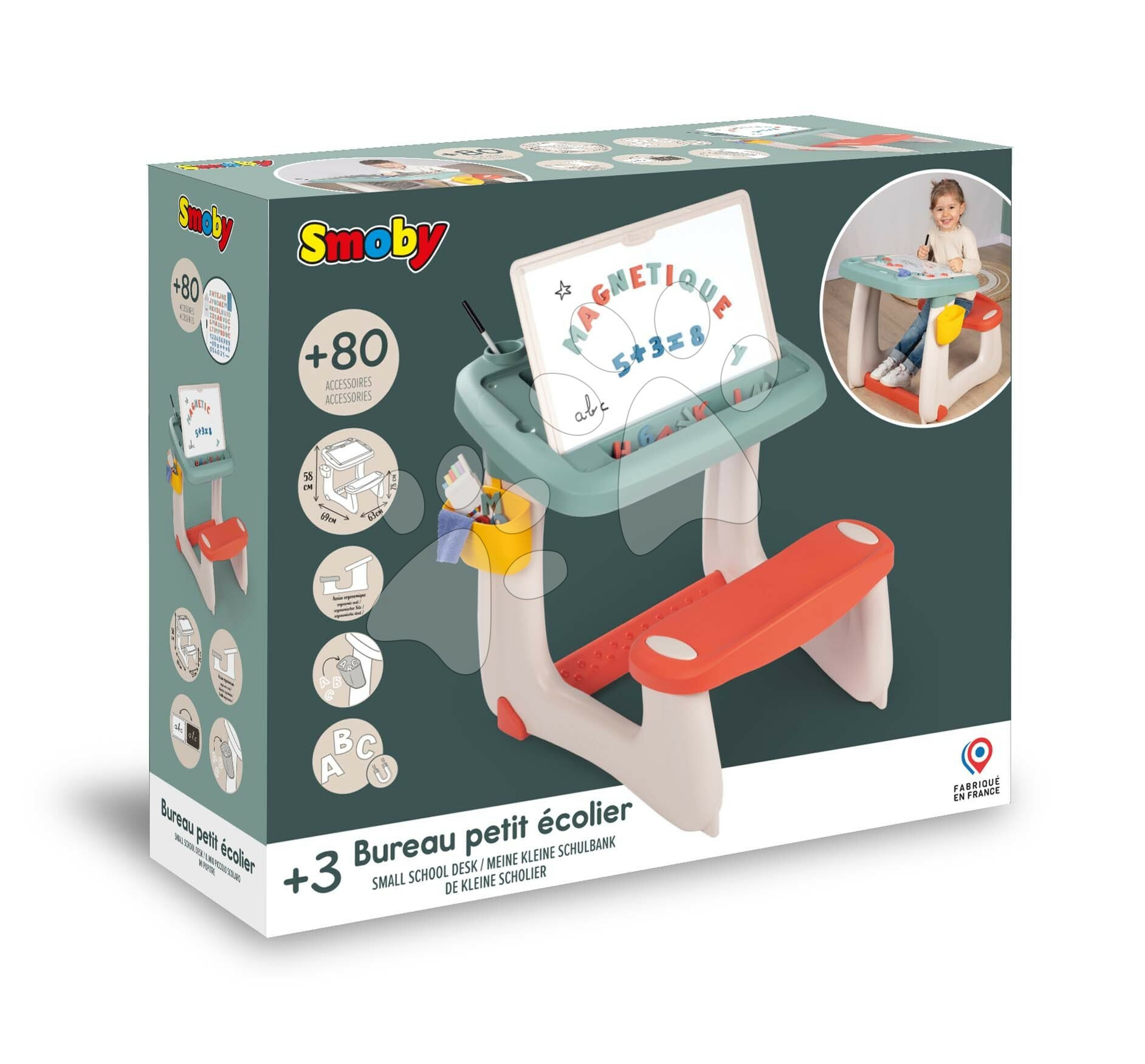 Smoby Lavice na kreslení a magnetky Little Pupils Desk s oboustrannou tabulí a úložným prostorem s 80 doplňky