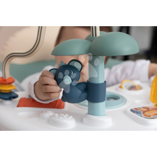 Stolek na hraní je vybaven didaktickými hračkami, které u dětí naplno rozvíjejí jemnou motoriku, objevují nové barvy a tvary, zabaví je na dlouhé hodiny. Těšit se mohou na schovávanou s klokanem, kterou se naučí ovládat mechanicky knoflíky, koalu na stromě, otočné zrcátko, hru s provlékáním, zrcátko a jiné skvělé doplňky. Didaktické hračky zlepšují u dětí i prostorové vidění, logické myšlení a také v nich podporují rozvoj fantazie a představivosti.