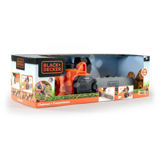 Motorová pila elektronická od francouzské značky Smoby připraví vašim dětem od 3 let skvělé zážitky při každodenní hře. Pila s motivem známé značky pracovního nářadí Black&Decker zaujme zejména kluky, kteří se mohou těšit na skvělé funkce. Pila dokáže vydávat zvuky a svítit, její hlavní předností je schopnost pohybovat řetězem při stisknutí tlačítka, tak jako skutečná pila. Prvotřídní hračka je jako stvořená pro kreativní děti, které si rády hrají na povolání řemeslníků a domácí kutily.