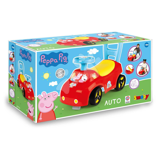 Smoby Odrážedlo a chodítko 2v1 Peppa Pig Auto Ride On Smoby ergonomické s opěrkou a úložným boxem pod sedadlem od 10 měsíců
