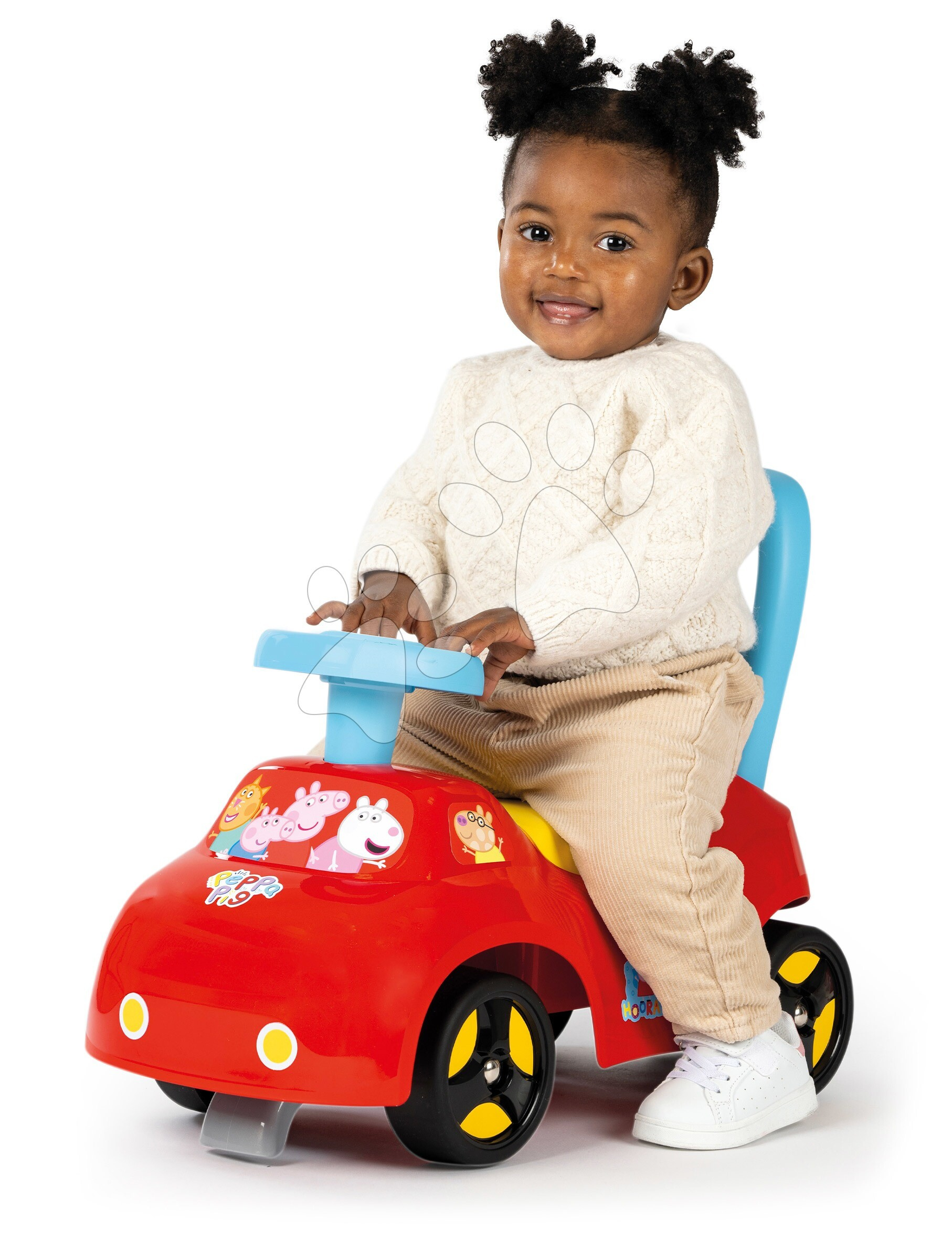 Smoby Odrážedlo a chodítko 2v1 Peppa Pig Auto Ride On Smoby ergonomické s opěrkou a úložným boxem pod sedadlem od 10 měsíců