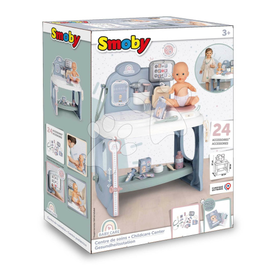 Pečovatelské centrum Baby Care Center od francouzského výrobce Smoby potěší všechny děti od 3 let, které si rády hrají hry na povolání. V originálním pečovatelském centru budou děti poskytovat lékařskou péči a provádět zdravotní kontroly pro své oblíbené panenky. K dispozici budou mít soupravu 24 doplňků, mezi nimiž jsou pomůcky pro plnohodnotné vyšetření. Děti mezi nimi najdou lékařské brýle, lékařské štítky, elektronický tablet se zvukem a světlem, brožuru se zdravotními záznamy, měřítko, reflexní kladívko, stetoskop, teploměr, otoskop, sirup, lžíce, krém, náplasti, stříkačku a další skvělé doplňky. S touto fantastickou hračkou získají realistické zážitky při hře na povolání lékařů.