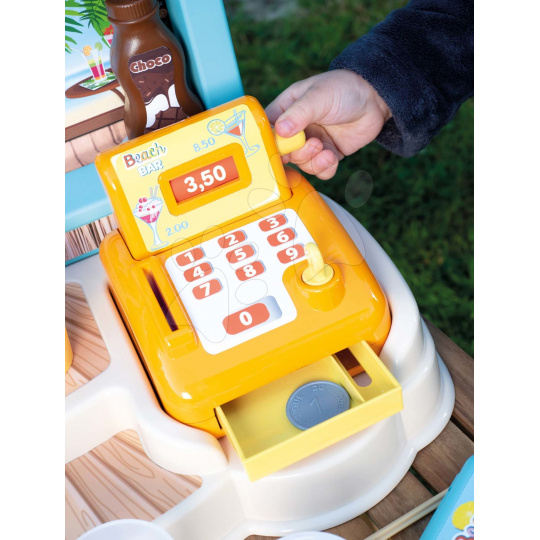 Smoby Plážový bar se zmrzlinou Beach Bar chladivé občerstvení ve stánku a pokladnou s 38 doplňky