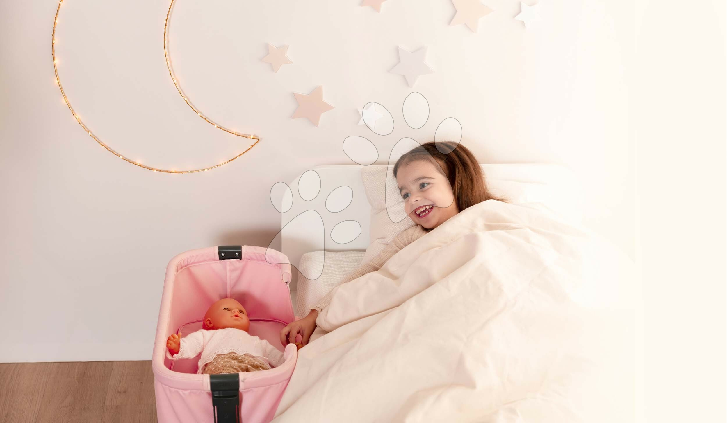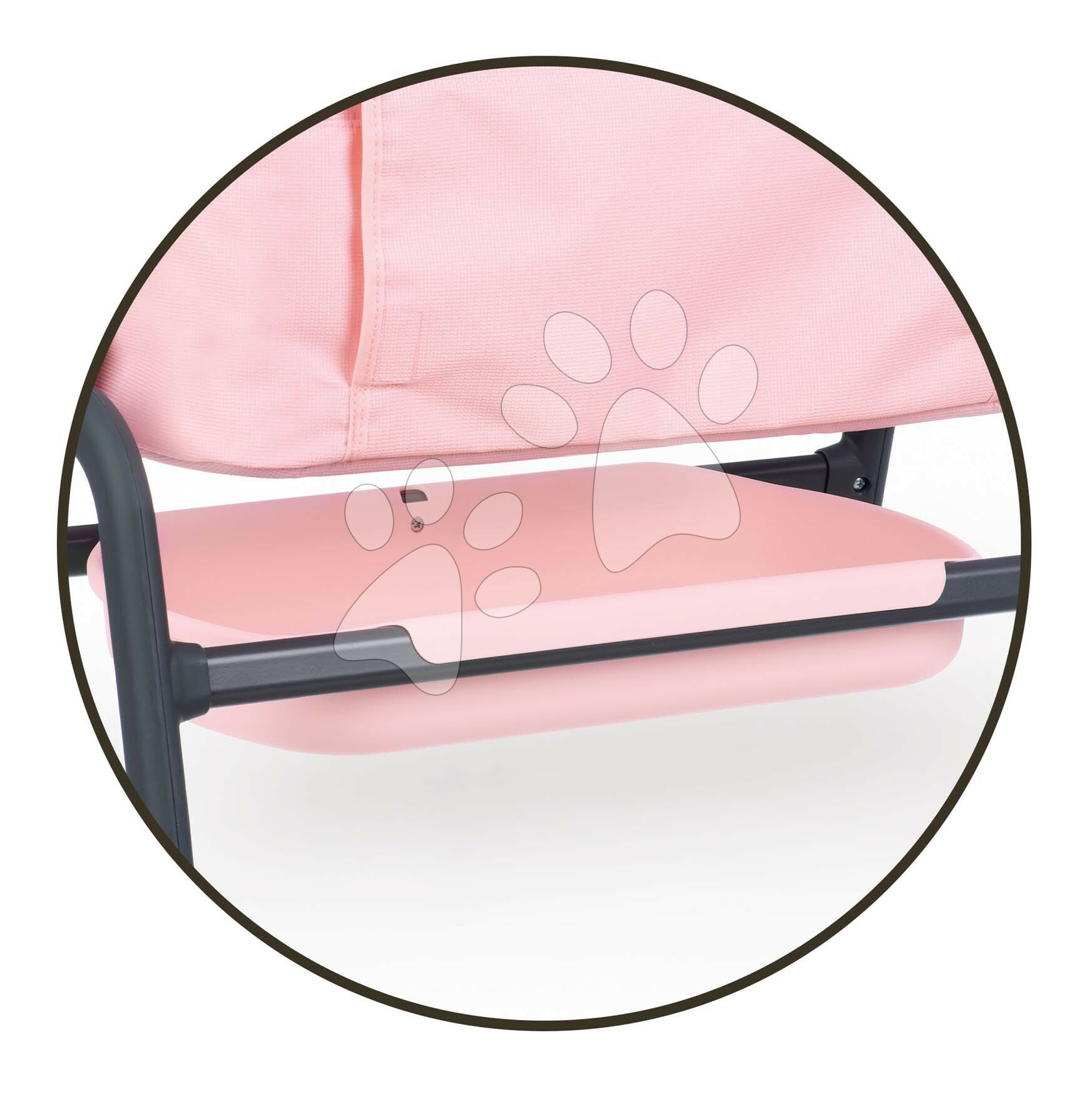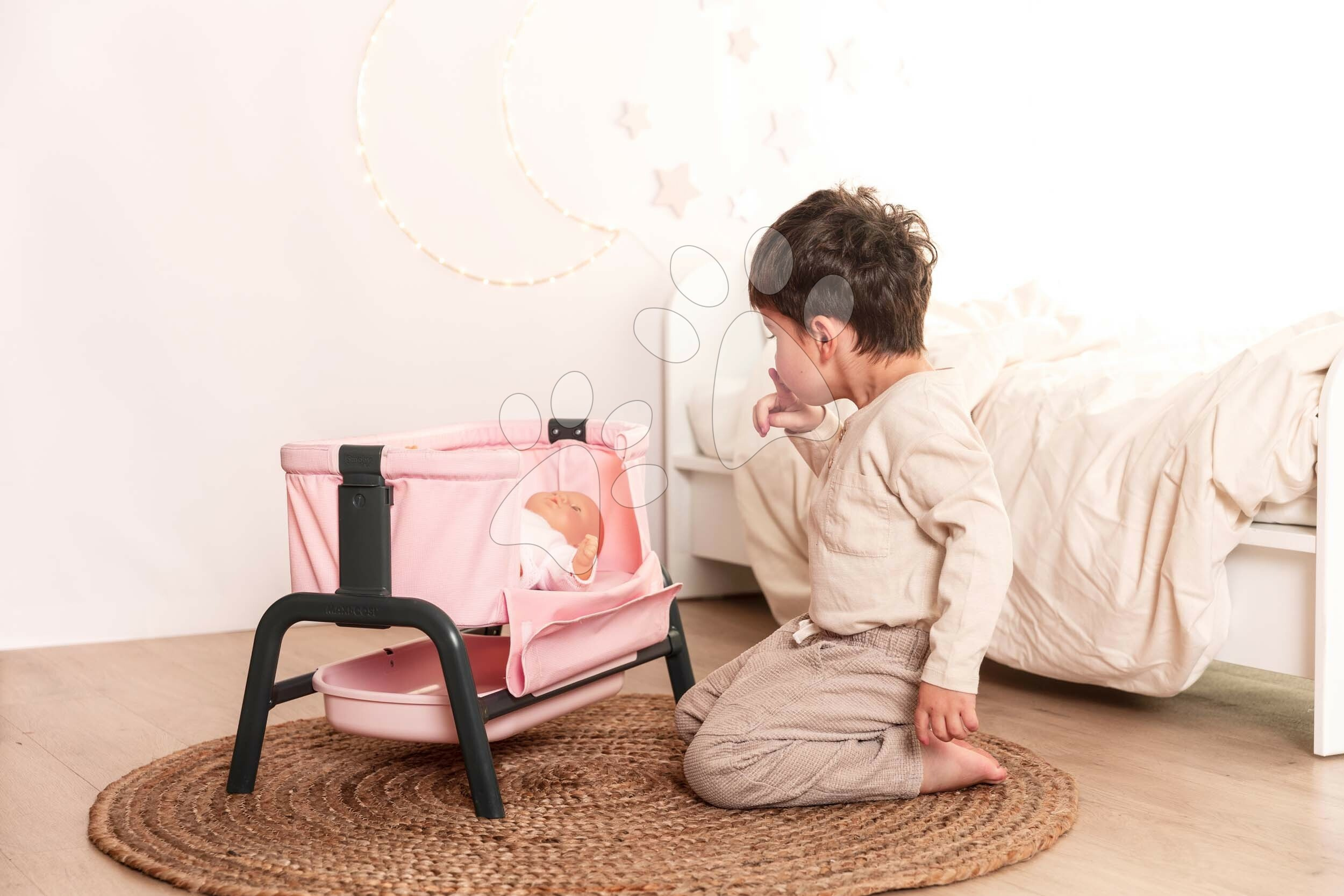Hračka pro panenky je vyrobena z kvalitních a odolných plastových materiálů se zaoblenými hranami. Postýlka se snadno přenáší a v případě potřeby se dá vyčistit vlhkým hadříkem. Péče o panenku jako o vlastní děťátko se děti přibližují světu dospělých, zkoušejí, co přináší život rodičů a nabírají pocit zodpovědnosti. Postýlku lze nastavit ve výši 36,5; 39; 41,5 nebo 44 cm od země. Originální francouzský design zaručí, že se s ní holčičky zabaví na dlouhá léta. Panenka není součástí balení.