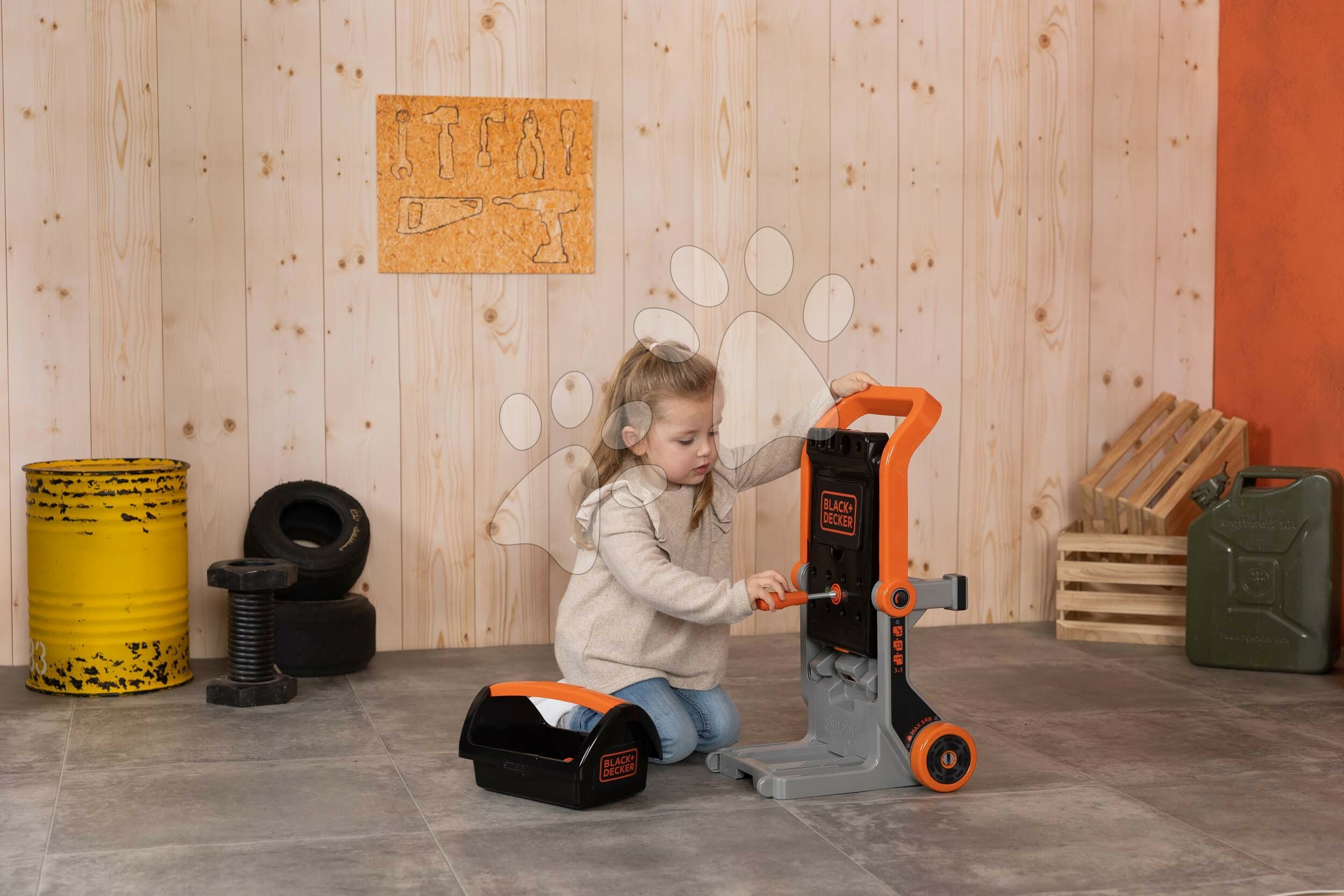 Smoby Pracovní dílna skládací na kolečkách Bricolo Devil Workmate 3in1 Black&Decker s kufříkem a 19 doplňků