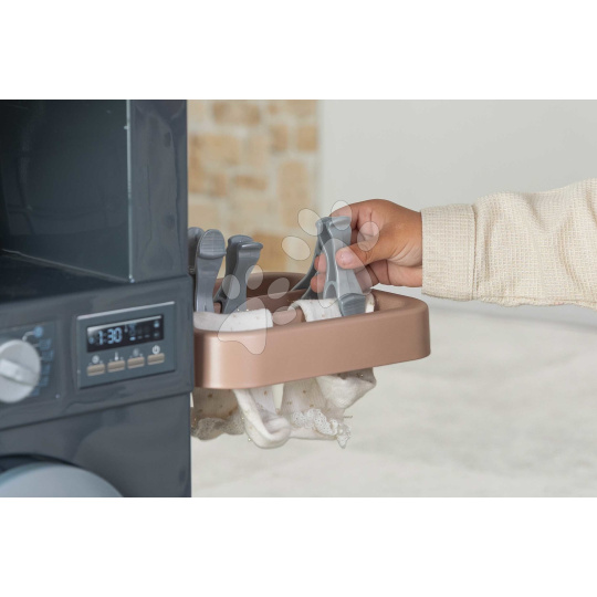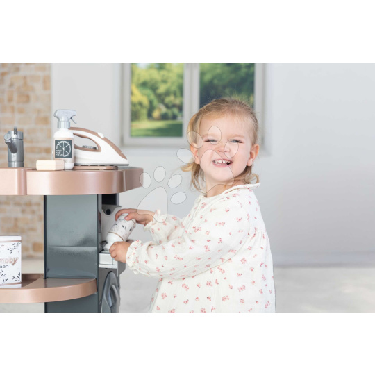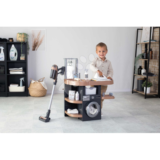 Smoby Prádelna s pračkou a elektronický vysavač Rowenta Wash&Clean Laundry se zvukem a žehličkou 17 doplňků