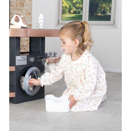 Prádelna s pračkou s předním plněním Rowenta Wash&Clean Laundry od francouzského výrobce Smoby potěší všechny děti od 3 let, kterým nabídne realistické zážitky při praní, žehlení a sušení prádla. Multifunkční prádelna ve tvaru písmene L umožní dětem přístup z více stran, zahrají si s ní sourozenci i kamarádi. Při úklidu budou mít děti k dispozici také tyčový elektronický vysavač s vyměnitelným nástavcem, který dokáže vydávat zvuky jako při skutečném vysávání.