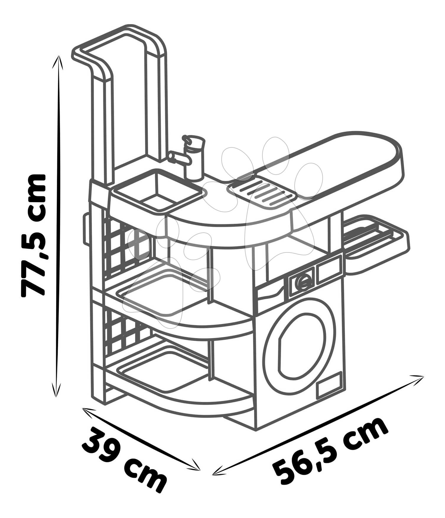 Prádelna stojí na stabilních nohách a její rozměry jsou 57*39*78 cm. Pračka a žehlička nedisponují elektronickými funkcemi. Smoby už dlouhá léta přináší dětem špičkové hračky s pravým francouzským designem. Materiál na hračkách Smoby je pevný, odolný, ale zároveň jemný a hladký k dětským ručkám. Všechny dětské hračky mají oblé hrany, aby vaše děti byly během veselých her v bezpečí.