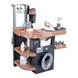 Smoby Prádelna s pračkou a elektronický vysavač Rowenta Wash&Clean Laundry se zvukem a žehličkou 17 doplňků