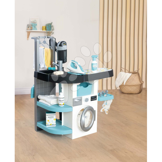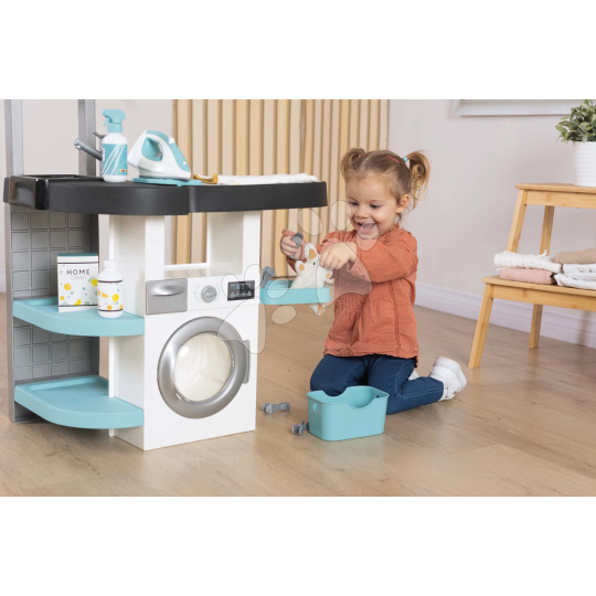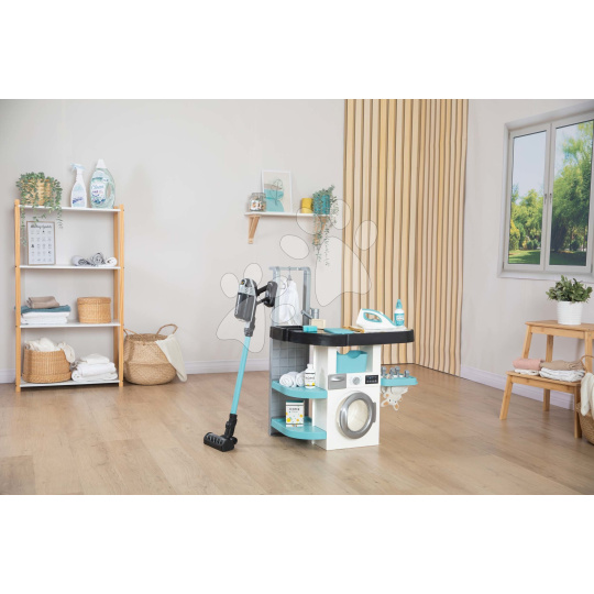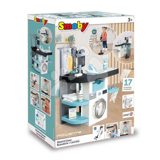 Smoby Prádelna s pračkou s předním plněním Rowenta Wash&Clean Laundry s elektronickým vysavačem se zvukem a žehličkou 17 doplňků