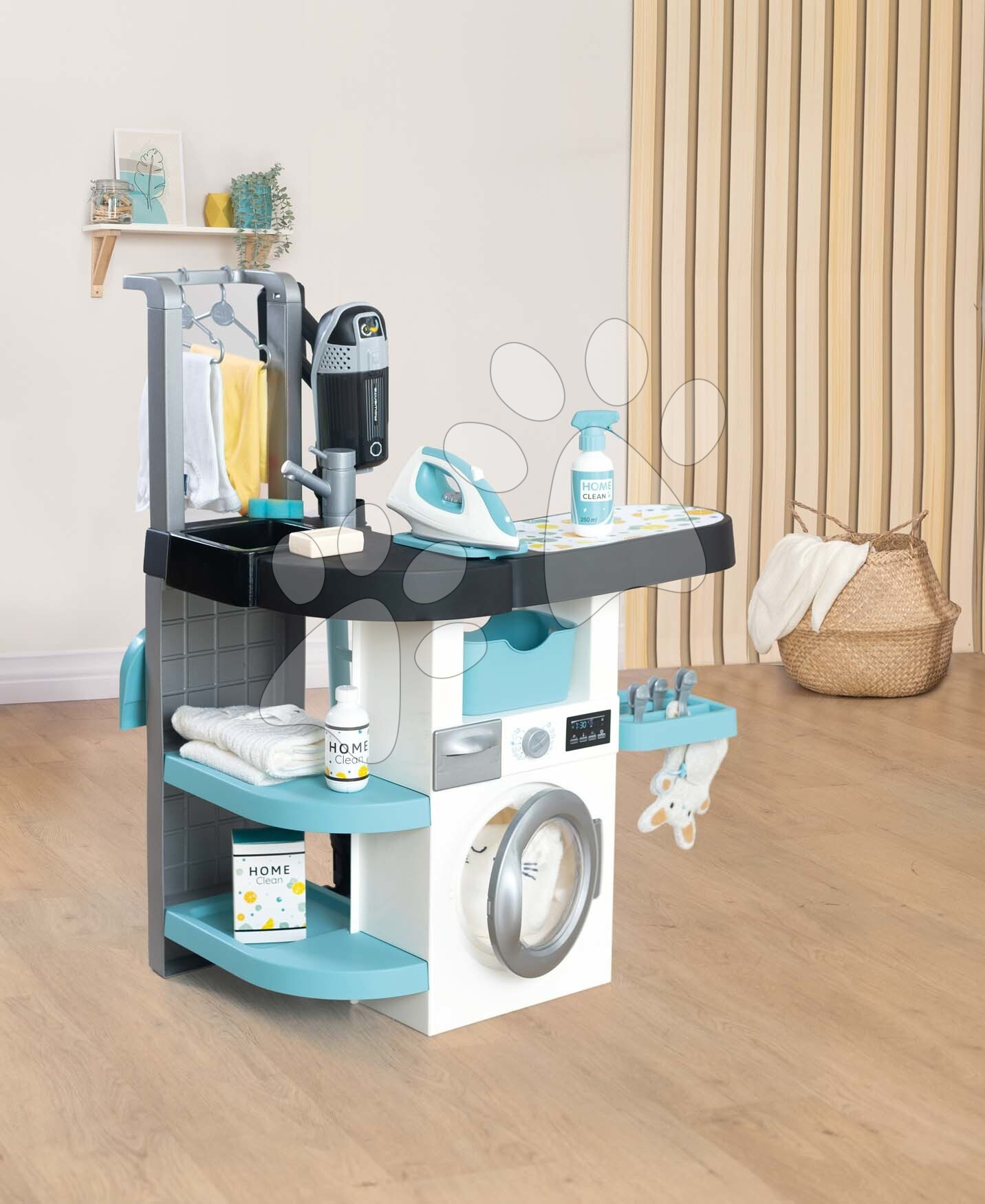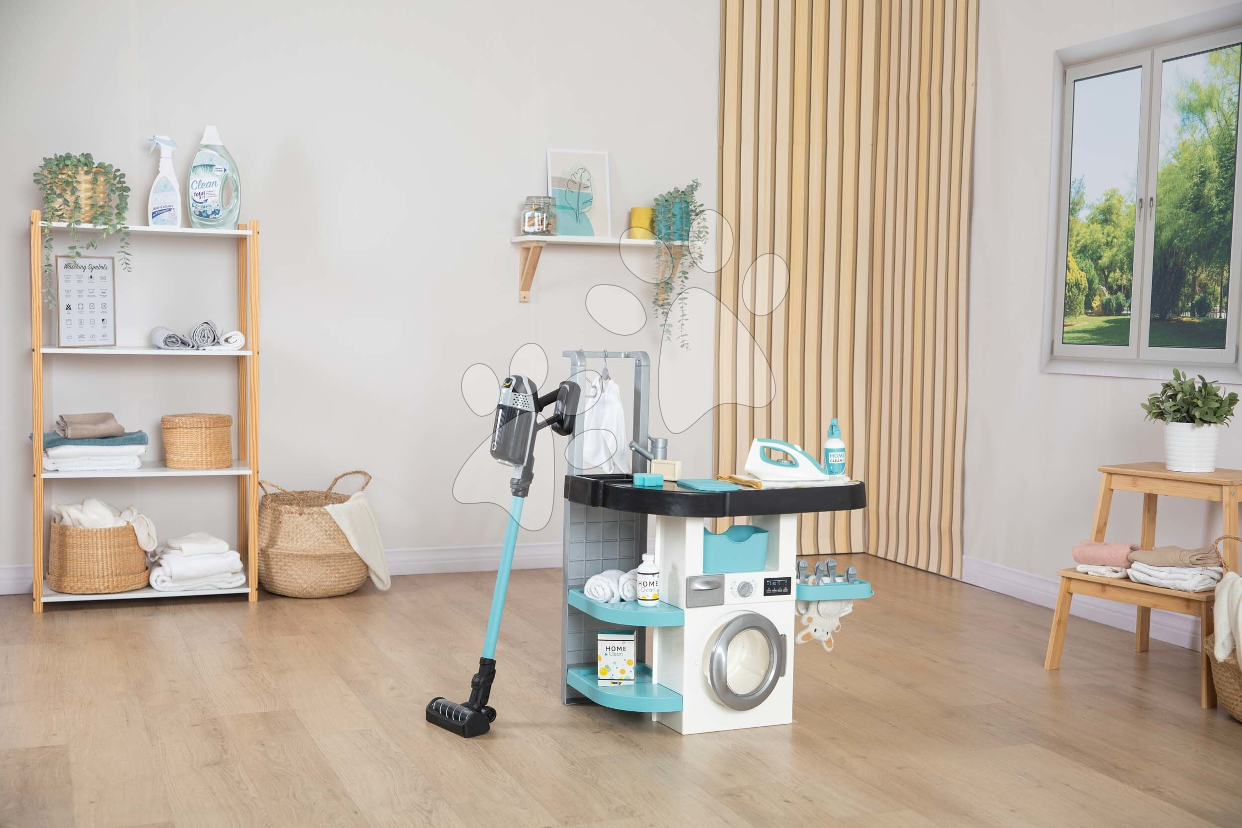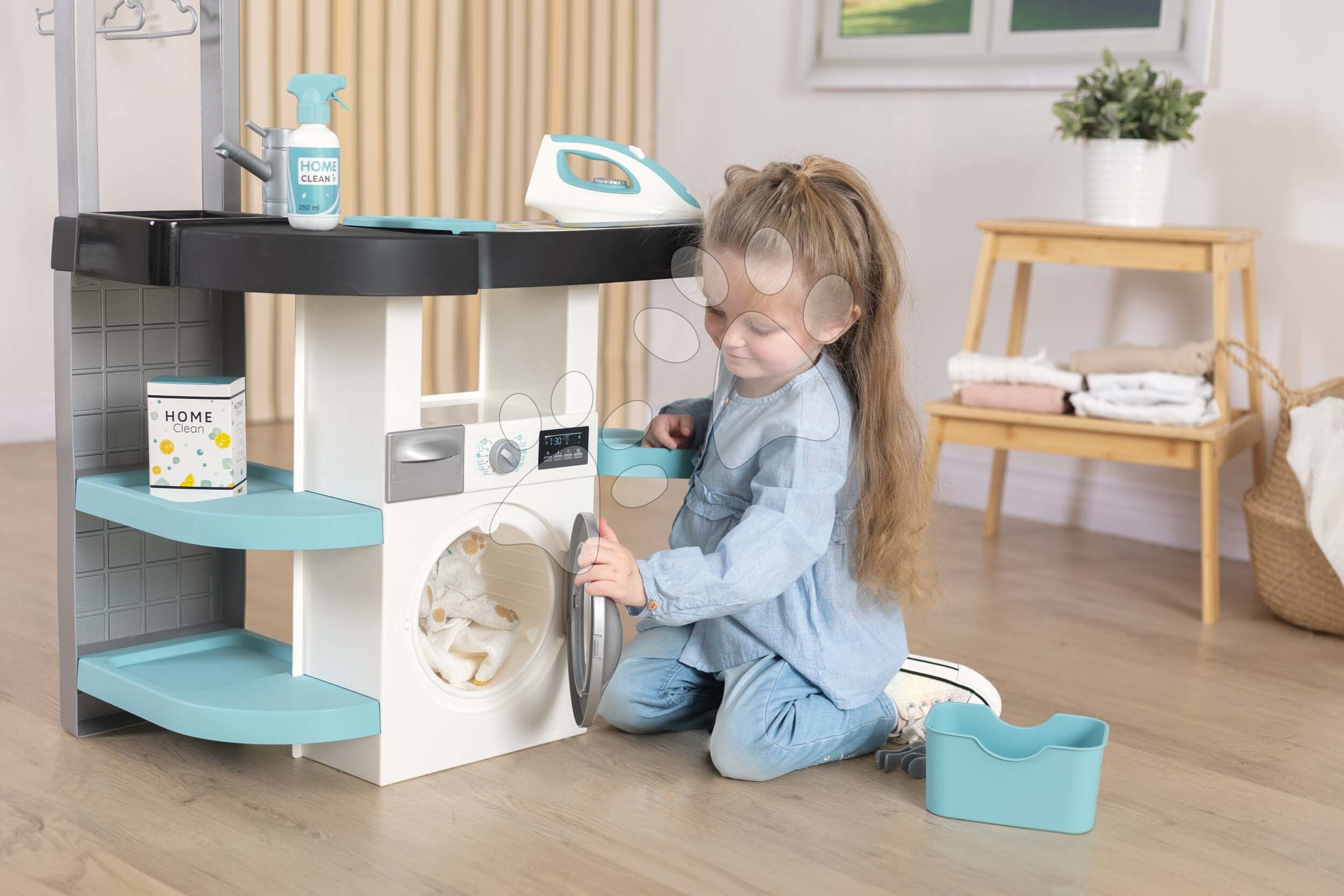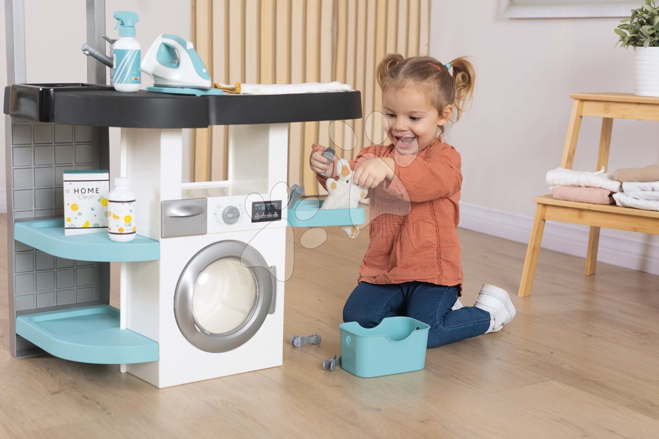 Smoby Prádelna s pračkou s předním plněním Rowenta Wash&Clean Laundry s elektronickým vysavačem se zvukem a žehličkou 17 doplňků