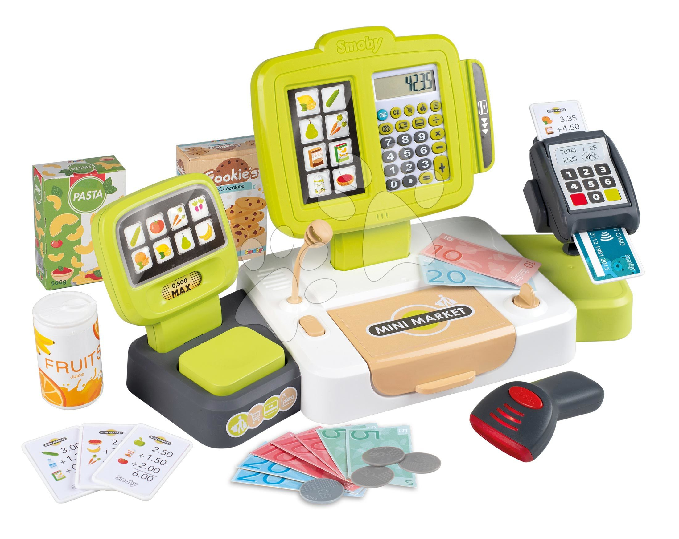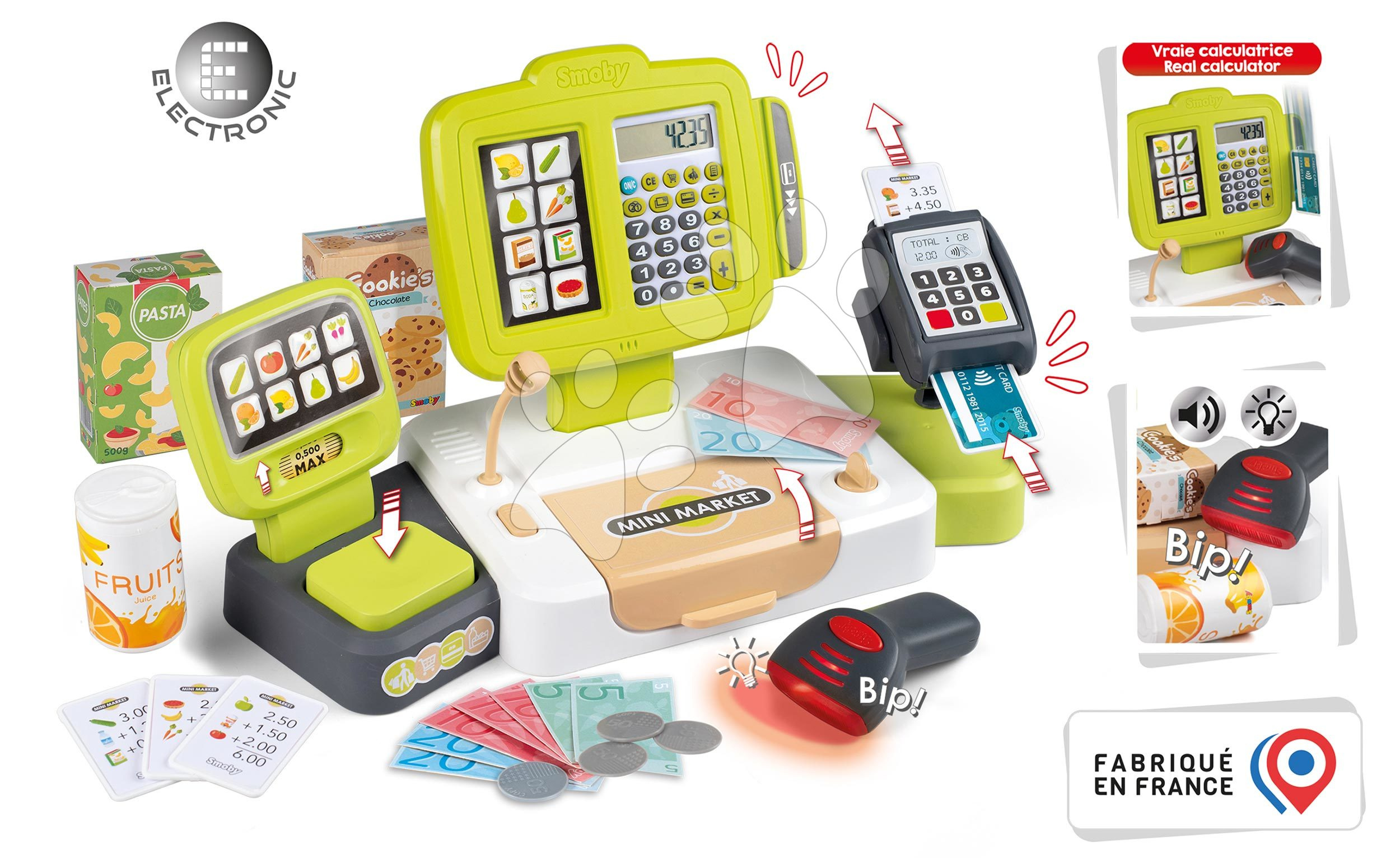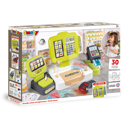 Smoby Registrační pokladna s elektronickými funkcemi Large Cash Register s funkčním skenerem kalkulačkou a mechanickou váhou s 30 doplňky