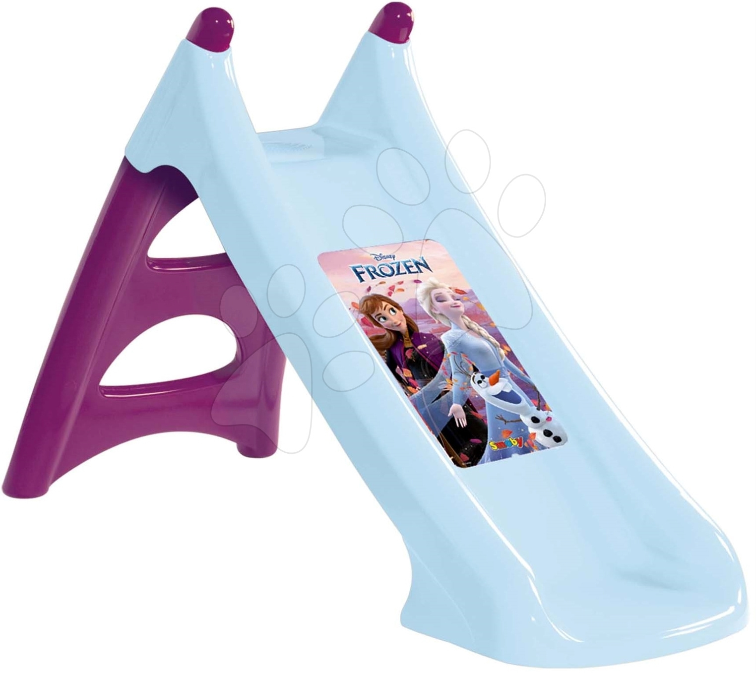 Skluzavka s vlhčením Frozen XS Slide od francouzského Smoby je krásná skluzavka, se kterou se zabaví všechny děti a zejména holčičky od 2 let. Má pevnou konstrukci a plochu na klozání o délce 90 cm. Je vyrobena z pevného a odolného plastu, který je sametový na dotek, také má jemné a oblé hrany. Modrá skluzavka s motivem animované pohádky Frozen (Ledové království) potěší všechny děti, které si oblíbily princezny Annu a Elsu. Bezpečnost dětské skluzavky zaručují protiskluzové schůdky a díky své výšce pouhých 75 cm se po ní mohou spouštět i nejmenší děti.