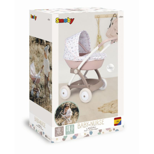 Smoby Hluboký kočárek s textilním potahem Pram Natur D'Amour Baby Nurse pro 42 cm panenku výška rukojeti 58 cm od 18 měsíců