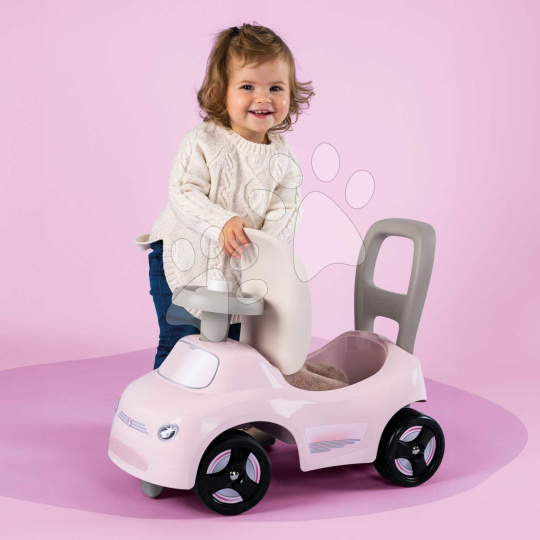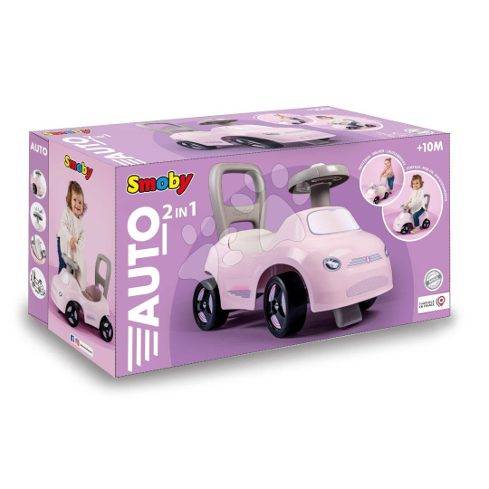 Smoby Sportovní odrážedlo a chodítko s funkčním klaksonem 2v1 Auto Ride On Pink růžové s otočnými koly a úložným prostorem pod sedadlem od 10 měsíců