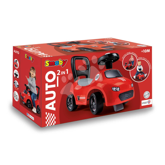 Smoby Sportovní odrážedlo a chodítko s funkčním klaksonem 2v1 Auto Ride On Red červené s otočnými koly a úložným prostorem pod sedadlem od 10 měsíců