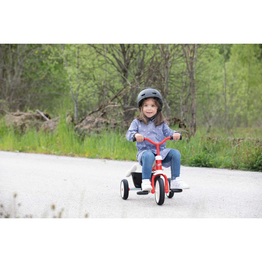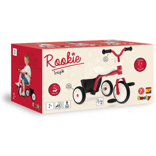 Tříkolka a odrážedlo Retro Rookie Trike od francouzského Smoby je ultralehká tříkolka vhodná pro chlapce i dívky již od 24 měsíců. Nejmenší děti ji mohou využívat také jako odrážedlo a když jsou větší, učí se šlapat do pedálů a jezdit jako na klasické tříkolce. Je vybavena špičkovou kovovou konstrukcí, která se vyznačuje vysokou kvalitou a odolností, ergonomicky tvarované sedátko nabídne dětem pohodlí i při delší trase. Prvotřídní EVA kolečka jsou vyrobena ze speciálního materiálu, kombinujícího výhody tichých gumových koleček a odolného plastu. Dítě si tak může užívat hladké a tiché jízdy v exteriéru i interiéru.
