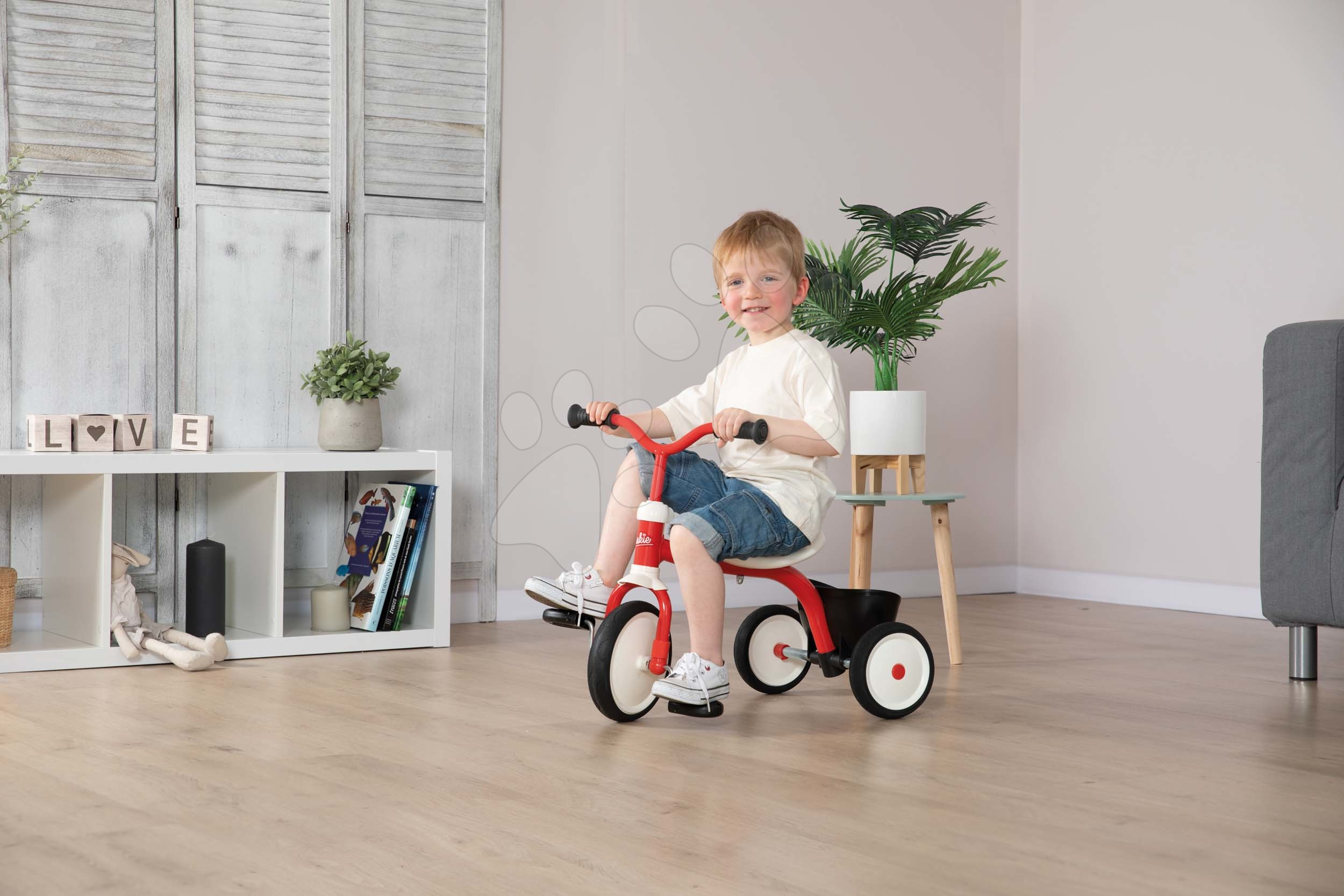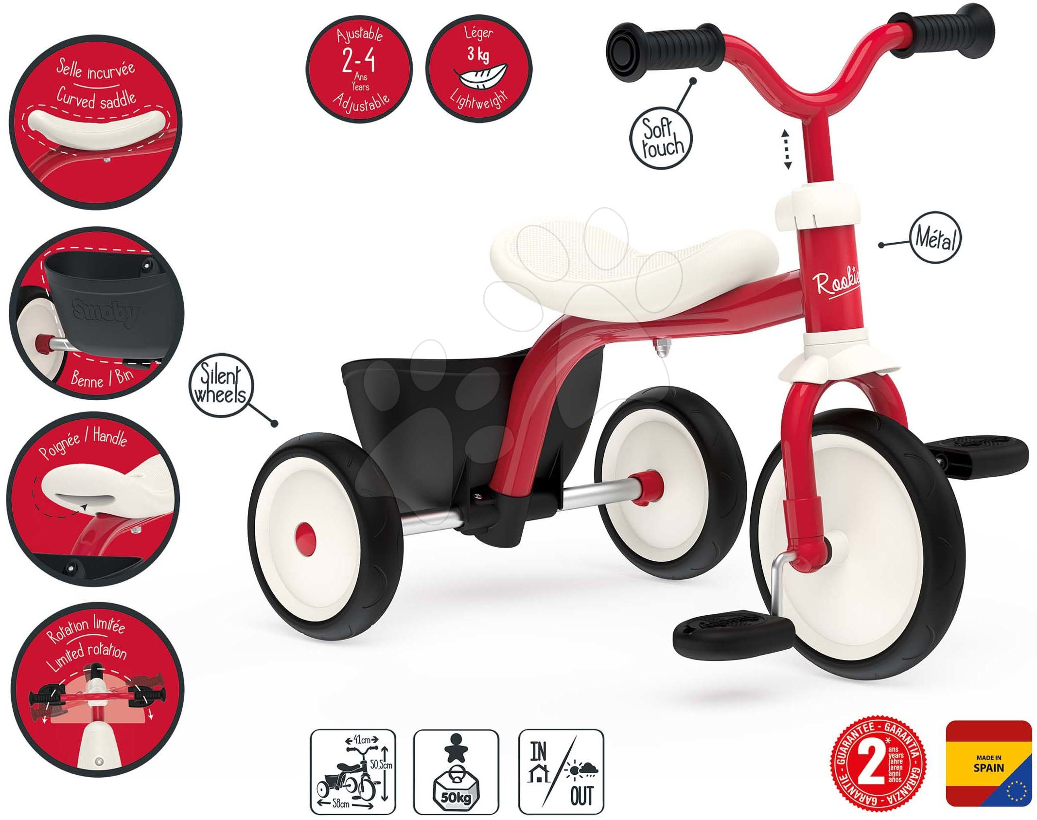 Tříkolka a odrážedlo Retro Rookie Trike od francouzského Smoby je ultralehká tříkolka vhodná pro chlapce i dívky již od 24 měsíců. Nejmenší děti ji mohou využívat také jako odrážedlo a když jsou větší, učí se šlapat do pedálů a jezdit jako na klasické tříkolce. Je vybavena špičkovou kovovou konstrukcí, která se vyznačuje vysokou kvalitou a odolností, ergonomicky tvarované sedátko nabídne dětem pohodlí i při delší trase. Prvotřídní EVA kolečka jsou vyrobena ze speciálního materiálu, kombinujícího výhody tichých gumových koleček a odolného plastu. Dítě si tak může užívat hladké a tiché jízdy v exteriéru i interiéru.