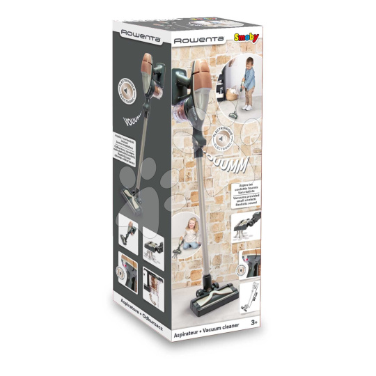 Tyčový vysavač Rowenta Air Force Vacuum Cleaner z dílny francouzských návrhářů Smoby je vynikající dárek pro děti od 3 let, které se mohou těšit na zábavné vysávání ve svém pokojíčku. Dětský vysavač dokáže vydávat zvuky a svítí, díky čemuž působí velmi realisticky. Při zapnutí vysavače LED kontrolka upozorňuje na to, že je vysavač zapnutý a děti se mohou těšit na zvuk vysávání. Nádobu na prach lze po skončení otevřít a vyprázdnit – součástí jsou i kuličky, které vytvářejí při hře ještě realističtější zážitek. Svými rozměry 75*15*8 cm a nízkou váhou je vhodnou hračkou pro děti, které chtějí doma pomáhat.