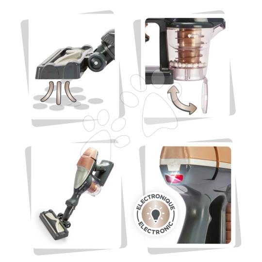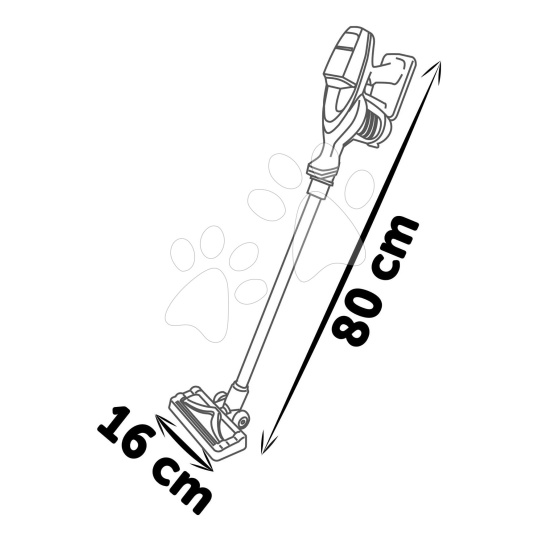 Vysavač je pouze replika skutečného vysavače, děti si s ním zahrají na dospělé a hravou formou získávají pocit zodpovědnosti a správné návyky při úklidu. Učí se zodpovědnosti, přibližují se světu dospělých a zlepšují si své motorické a pohybové dovednosti. Hra s vysavačem je maximálně bezpečná, při jeho výrobě se použily kvalitní a odolné plasty s oblými hranami. Celková délka tyčového vysavače je 80 cm, dítě si může jeho délku upravit na klasický ruční vysavač. Elektronický modul se napájí 3 bateriemi typu 1,5V LR6, které nejsou součástí balení.