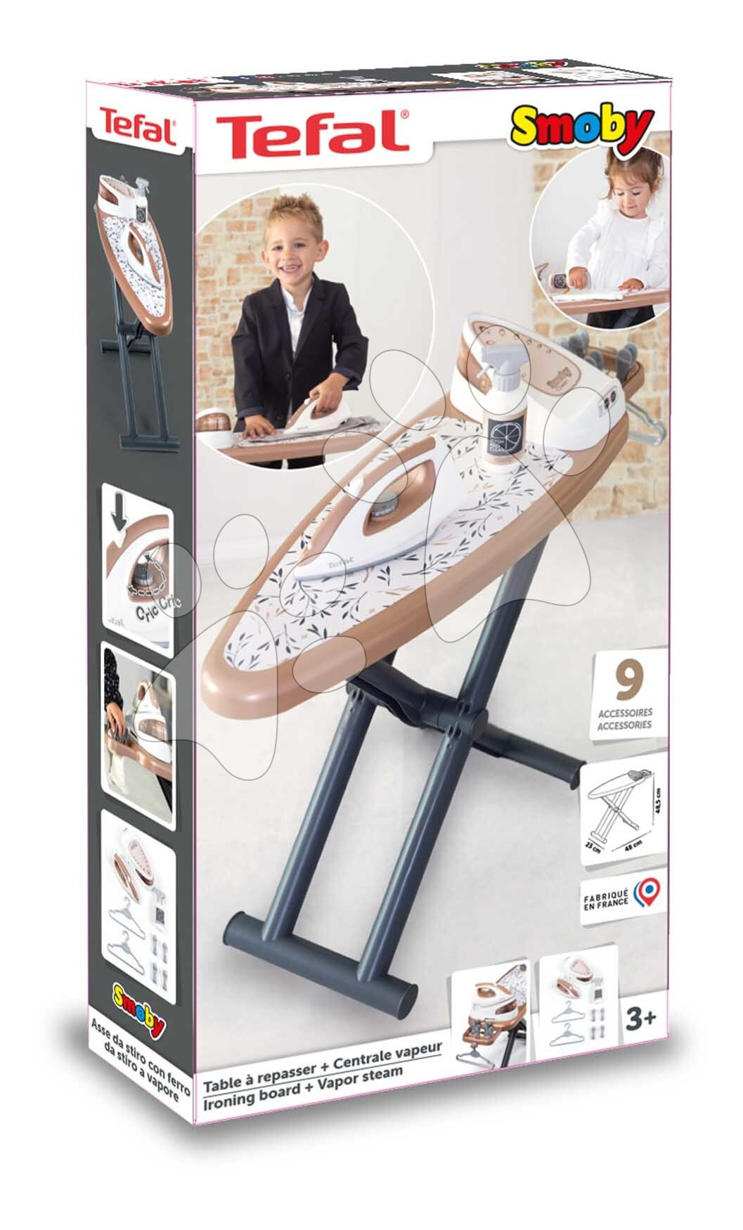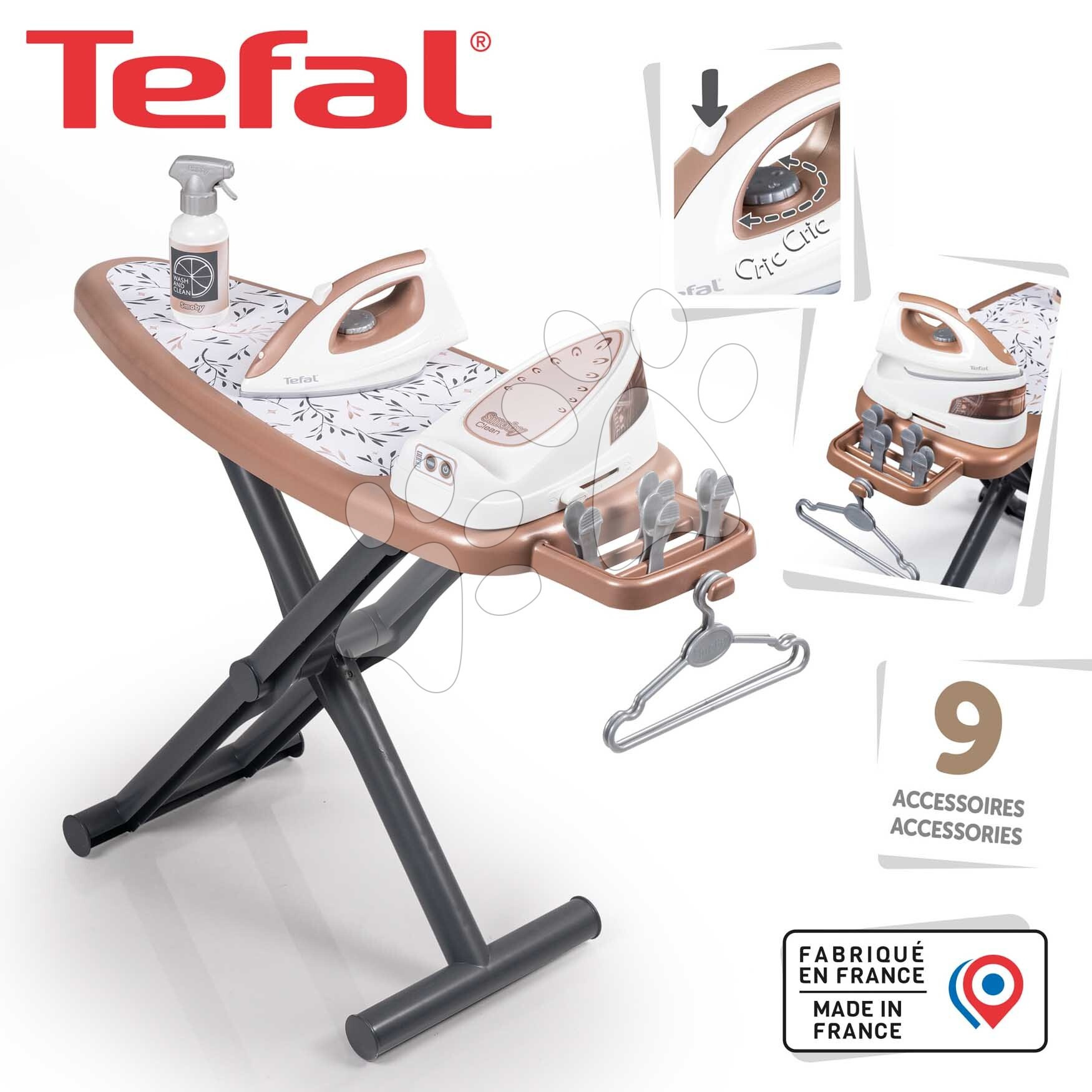 Smoby Žehlicí prkno s napařovací žehličkou Tefal Ironing Board Smoby s ramínky a 9 doplňky