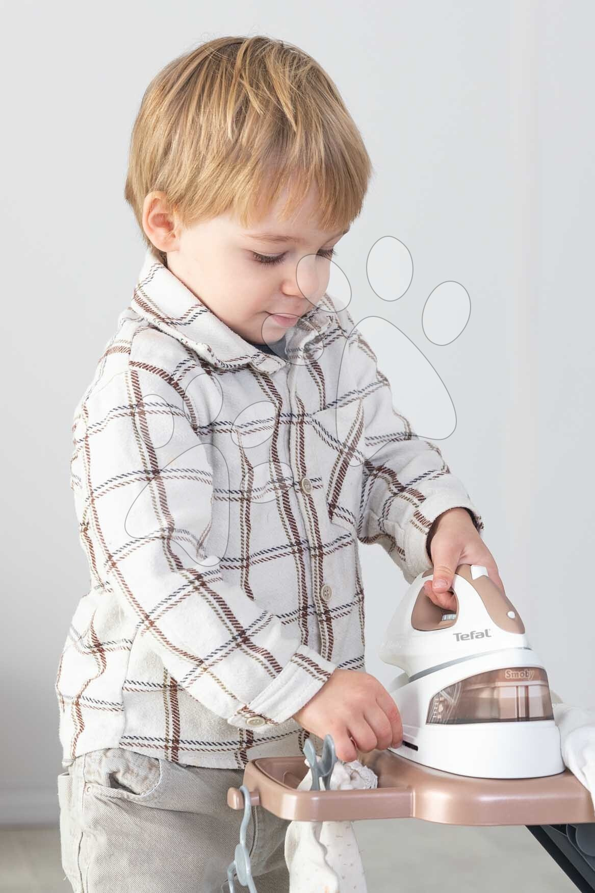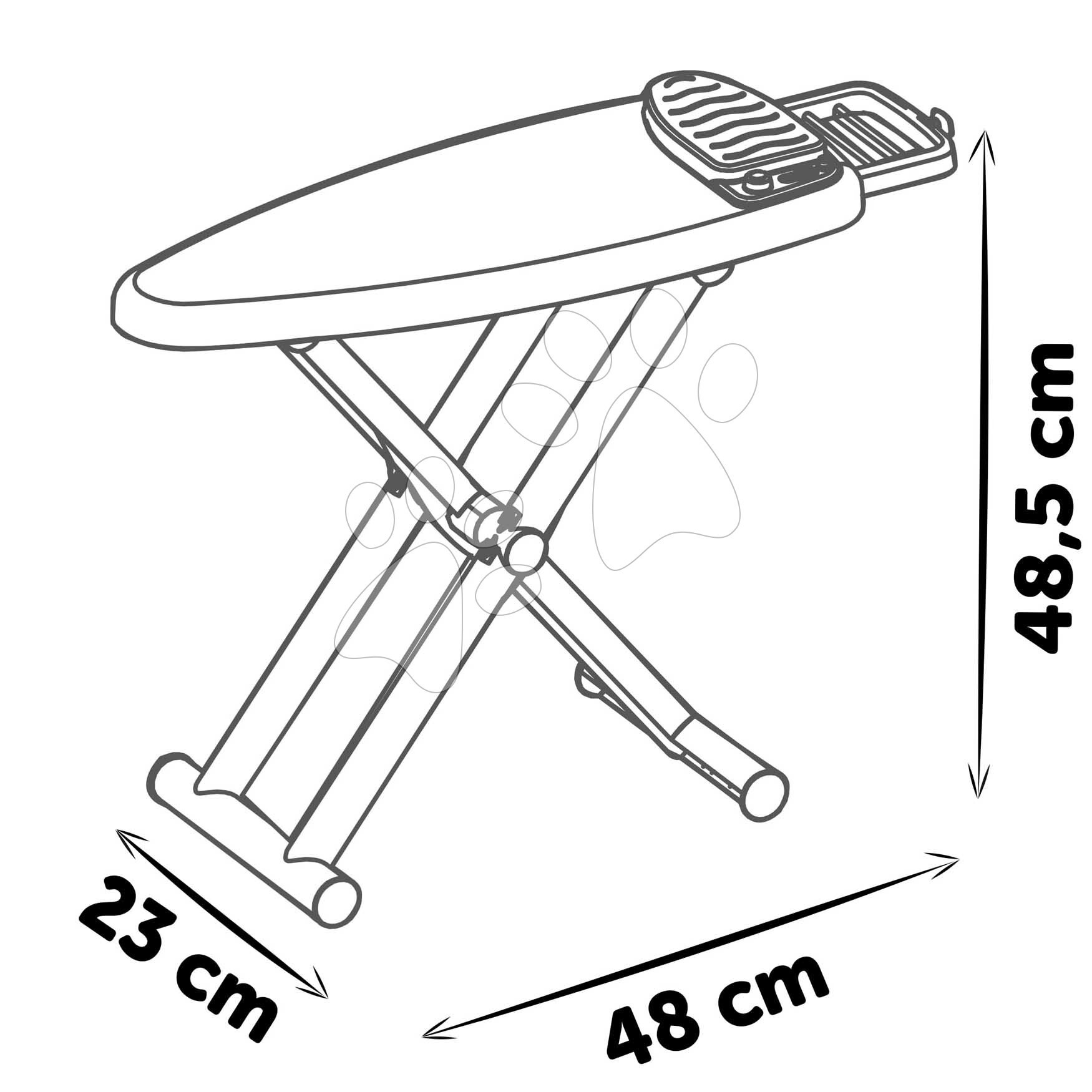 Žehlicí prkno se žehličkou Tefal Ironing Board představuje vynikající sadu pomůcek pro žehlení pro malé pomocnice v domácnosti od 3 let. Prkno na žehlení upoutá dítě na první pohled, vypadá opravdu realisticky. Má pevnou konstrukci a lze ho snadno složit. Je vyhotoveno v elegantním barevném provedení, takže ozdobí každý dětský pokojíček. Povrch žehlicího prkna je ozdoben originálním motivem, díky čemuž bude žehlení pro děti mnohem zábavnější a radostnější. Rozměry žehlicího prkna pro děti jsou 69*23*49 cm, výška plochy na žehlení je 49 cm. Žehlicí prkno má také podstavec na položení žehličky, který se podobná parní nádobě.
