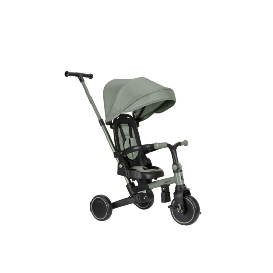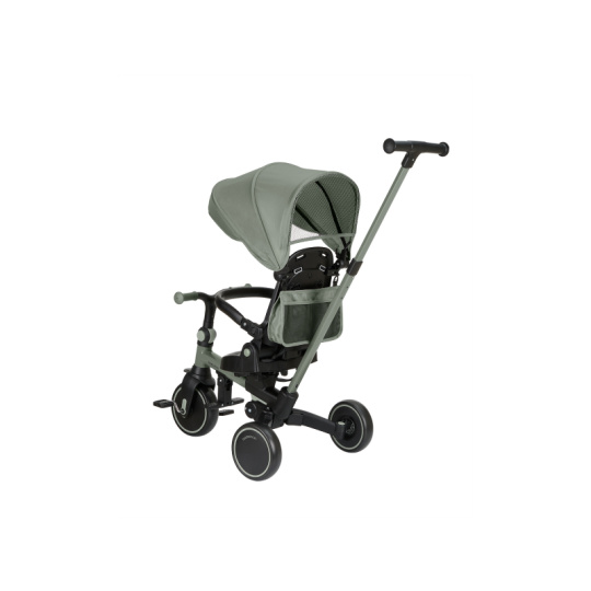 Multifunkční tříkolka KikkaBoo Aluma 8v1 je navržená tak, aby dítěti sloužila opravdu dlouho – od 12 do 60 měsíců. V začátcích funguje v bezpečném „kočárkovém“ režimu s vedením rodičem, postupně přechází do samostatné jízdy jako tříkolka s pedály a odrážedlo. Díky skládacímu provedení a chytrým detailům je ideální i na cestování. Pro maximální bezpečí je tříkolka vybavená 5-bodovým pásem, odnímatelným bezpečnostním madlem a nastavitelnou stříškou, kterou lze podle potřeby odejmout. Nechybí sklápěcí opěrka zad nastavitelná do 4 poloh, nastavitelná řídítka a otočné sedátko. Rodiče ocení nastavitelnou vodicí tyč ve 3 polohách, díky kterým se tříkolka dobře ovládá. Pedály na předním kole lze zablokovat, zadní kola mají brzdu a celé složení funguje jedním tlačítkem. Pro přenášení je k dispozici madlo a na drobnosti taška na příslušenství. Konstrukce je z lehké a pevné hliníkové slitiny, takže je tříkolka dobře přenosná a zároveň stabilní pro každodenní používání. skládací design + složení jedním tlačítkem multifunkční 8v1 (od rodičovského vedení až po odrážedlo) lehký a odolný hliníkový rám otočné sedátko nastavitelná řídítka a opěrka zad odnímatelná a nastavitelná stříška 5-bodové pásy + odnímatelné bezpečnostní madlo nastavitelná vodicí tyč sklápěcí opěrka nohou zámek pedálů předního kola zadní brzda odnímatelné pedály madlo na přenášení + taška na doplňky Rozměry (rozložená): 71 × 49 × 93–99 cm Rozměry (složená): 55 × 49 × 38 cm Hmotnost: 6,4 kg Vhodné pro děti od 12 do 60 měsíců.