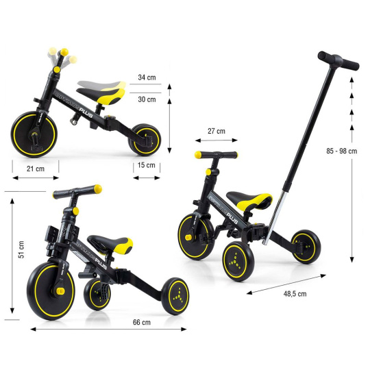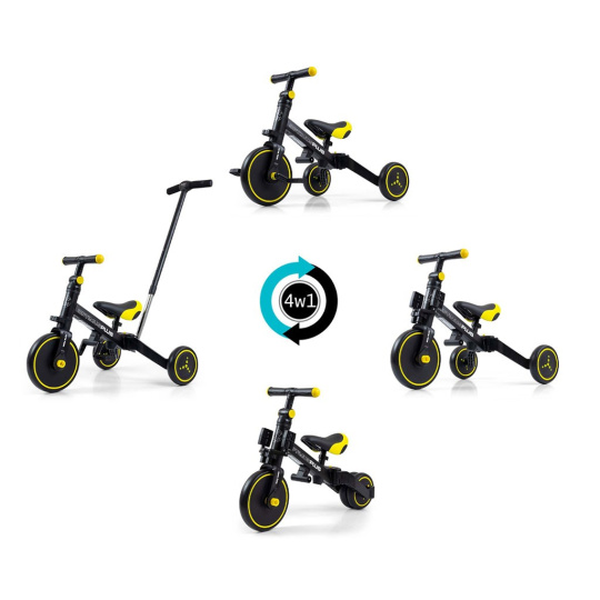 Dětská tříkolka 4v1 Milly Mally Optimus Plus s vodící tyčí black