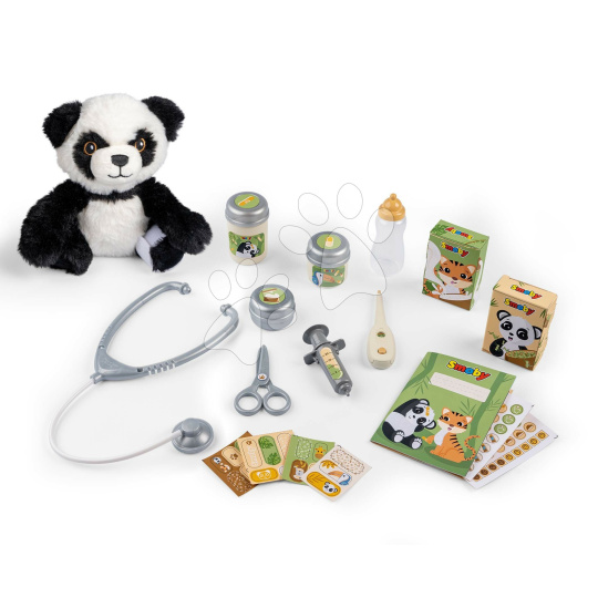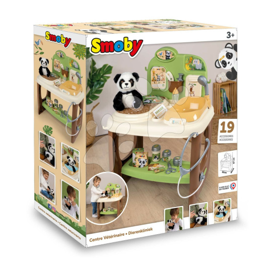 Zvěrolékařská ordinace Veterinary Center od francouzského výrobce Smoby připraví dětem od 3 let spoustu radostných zážitků při hře na zvěrolékaře. Chlapci a holčičky budou mít k dispozici plyšovou pandu k procvičení vyšetřovacích úkonů a postupů, které musí znát každý veterinář. Ve své nové ordinaci využijí vyšetřovací pult a pomocí lékařských nástrojů se snaží zjistit zdravotní stav zvířátka. Vedle pultu se nachází vanička se sprchovou hlavicí, ve které lékař svého malého pacienta po vyšetření vykoupe, přičemž může otočným válečkem nastavit správnou teplotu vody.