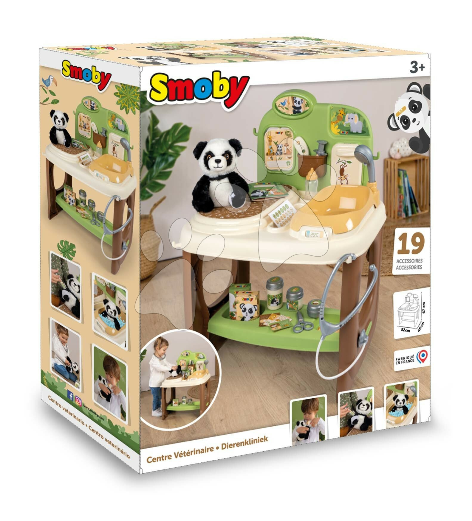 Zvěrolékařská ordinace Veterinary Center od francouzského výrobce Smoby připraví dětem od 3 let spoustu radostných zážitků při hře na zvěrolékaře. Chlapci a holčičky budou mít k dispozici plyšovou pandu k procvičení vyšetřovacích úkonů a postupů, které musí znát každý veterinář. Ve své nové ordinaci využijí vyšetřovací pult a pomocí lékařských nástrojů se snaží zjistit zdravotní stav zvířátka. Vedle pultu se nachází vanička se sprchovou hlavicí, ve které lékař svého malého pacienta po vyšetření vykoupe, přičemž může otočným válečkem nastavit správnou teplotu vody.