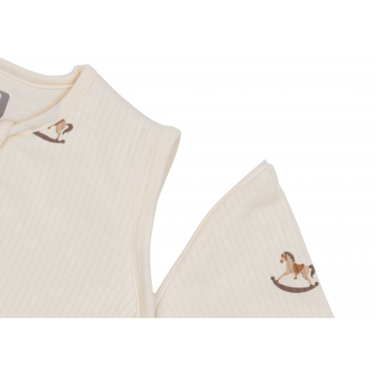 Praktický spací pytel s oddělitelnými rukávy nabízí variabilitu při použití dle počasí a teploty v místnosti. Díky jemné výplni je vhodný pro použití místo peřinky. Spací pytel zajistí, že se dítě v noci neodkope a bude tak po celou dobu spánku v pohodlí a teple bez rizika prochladnutí. Kryté zipy v průramcích umožňují snadné oddělení rukávů, pokud chcete spací pytel používat v teplejším prostředí bez rukávů. Zip na přední straně umožňuje snadné vložení dítěte do spacího pytle i přebalování během spaní. Spací pytel je testován na TOG hodnotu, která určuje hřejivost spacích pytlů a dek. Čím vyšší je hodnota TOG, tím je produkt teplejší. Spací pytel s rukávy má hodnotu TOG 3, bez rukávů má hodnotu TOG 2, jedná se tedy o spací pytel vhodný pro celoroční použití. Složení: 100% bavlna, výplň 100% polyester Rozměry: 70 x 43 cm Určeno pro děti od 3 do 6 měsíců.