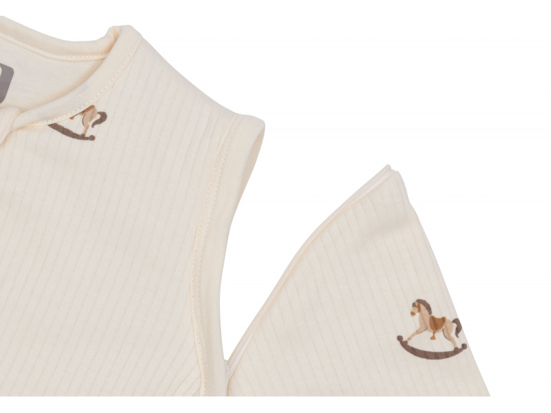 Praktický spací pytel s oddělitelnými rukávy nabízí variabilitu při použití dle počasí a teploty v místnosti. Díky jemné výplni je vhodný pro použití místo peřinky. Spací pytel zajistí, že se dítě v noci neodkope a bude tak po celou dobu spánku v pohodlí a teple bez rizika prochladnutí. Kryté zipy v průramcích umožňují snadné oddělení rukávů, pokud chcete spací pytel používat v teplejším prostředí bez rukávů. Zip na přední straně umožňuje snadné vložení dítěte do spacího pytle i přebalování během spaní. Spací pytel je testován na TOG hodnotu, která určuje hřejivost spacích pytlů a dek. Čím vyšší je hodnota TOG, tím je produkt teplejší. Spací pytel s rukávy má hodnotu TOG 3, bez rukávů má hodnotu TOG 2, jedná se tedy o spací pytel vhodný pro celoroční použití. Složení: 100% bavlna, výplň 100% polyester Rozměry: 70 x 43 cm Určeno pro děti od 3 do 6 měsíců.