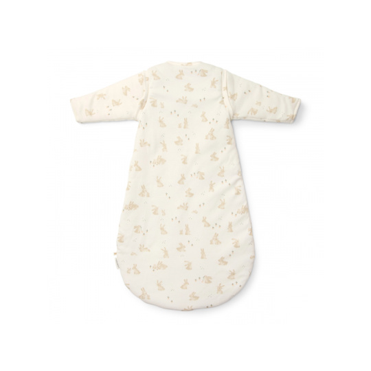 Praktický spací pytel s oddělitelnými rukávy nabízí variabilitu při použití dle počasí a teploty v místnosti. Díky jemné výplni je vhodný pro použití místo peřinky. Spací pytel zajistí, že se dítě v noci neodkope a bude tak po celou dobu spánku v pohodlí a teple bez rizika prochladnutí. Kryté zipy v průramcích umožňují snadné oddělení rukávů, pokud chcete spací pytel používat v teplejším prostředí bez rukávů. Zip na přední straně umožňuje snadné vložení dítěte do spacího pytle i přebalování během spaní. Spací pytel je testován na TOG hodnotu, která určuje hřejivost spacích pytlů a dek. Čím vyšší je hodnota TOG, tím je produkt teplejší. Spací pytel má hodnotu TOG 2, jedná se tedy o spací pytel vhodný pro celoroční použití. Spací pytel je součástí designové kolekce textilních doplňků Little Dutch Baby Bunny. Složení: 100% bavlna, výplň 100% polyester Vhodné pro děti od 60 do 76 cm (cca od 3 do 9 měsíců).